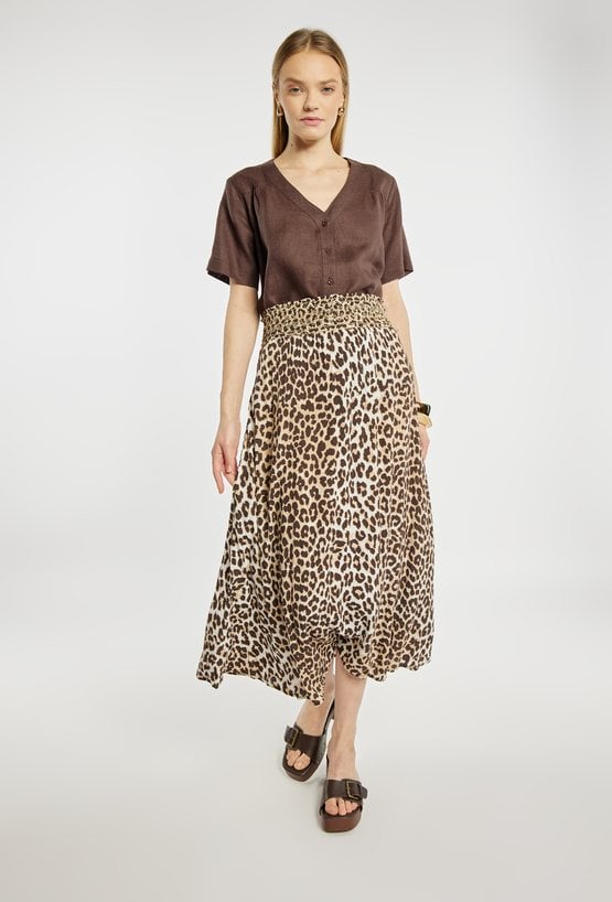 Prać w temperaturze 30 °C w delikatnym cyklu z podobnymi kolorami. Nie wybielać i nie chlorować. Prasować w temperaturze maksymalnej 150 °C po lewej stronie lub przez bawełniane płócienko. Nie czyścić chemicznie. Suszyć na wisząco na suszarce do odzieży. Nie suszyć w suszarce bębnowej. Prać wywrócone na lewą stronę. Włókno celulozowe zawarte w materiale może powodować wykurcz produktu w procesie konserwacji. Zjawisko to jest naturalną cechą tego włókna.