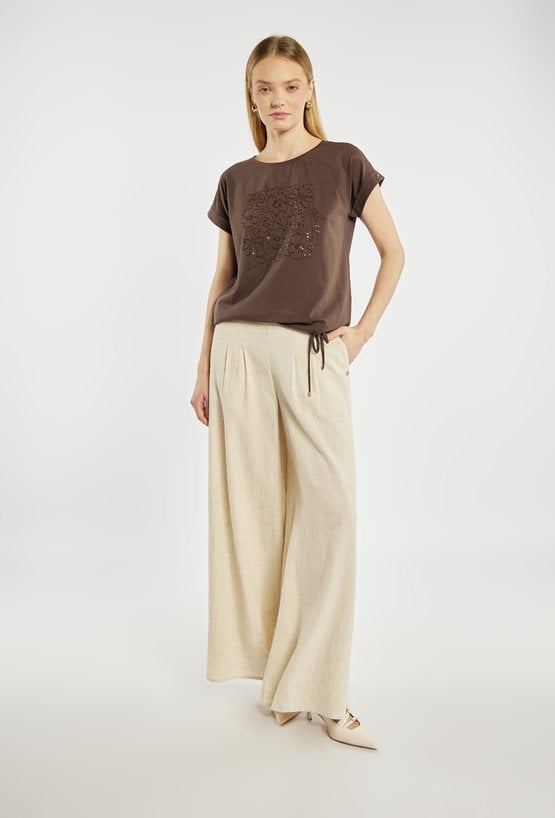 Szerokie spodnie z dodatkiem lnu
