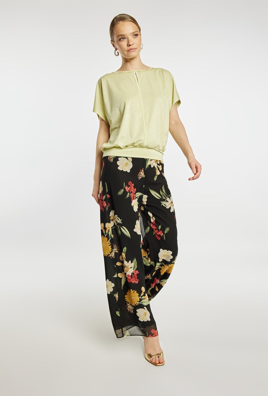 Spodnie w kwiaty z szeroką nogawką