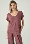 Bluzka z dekoltem V i podwiniętym rękawem