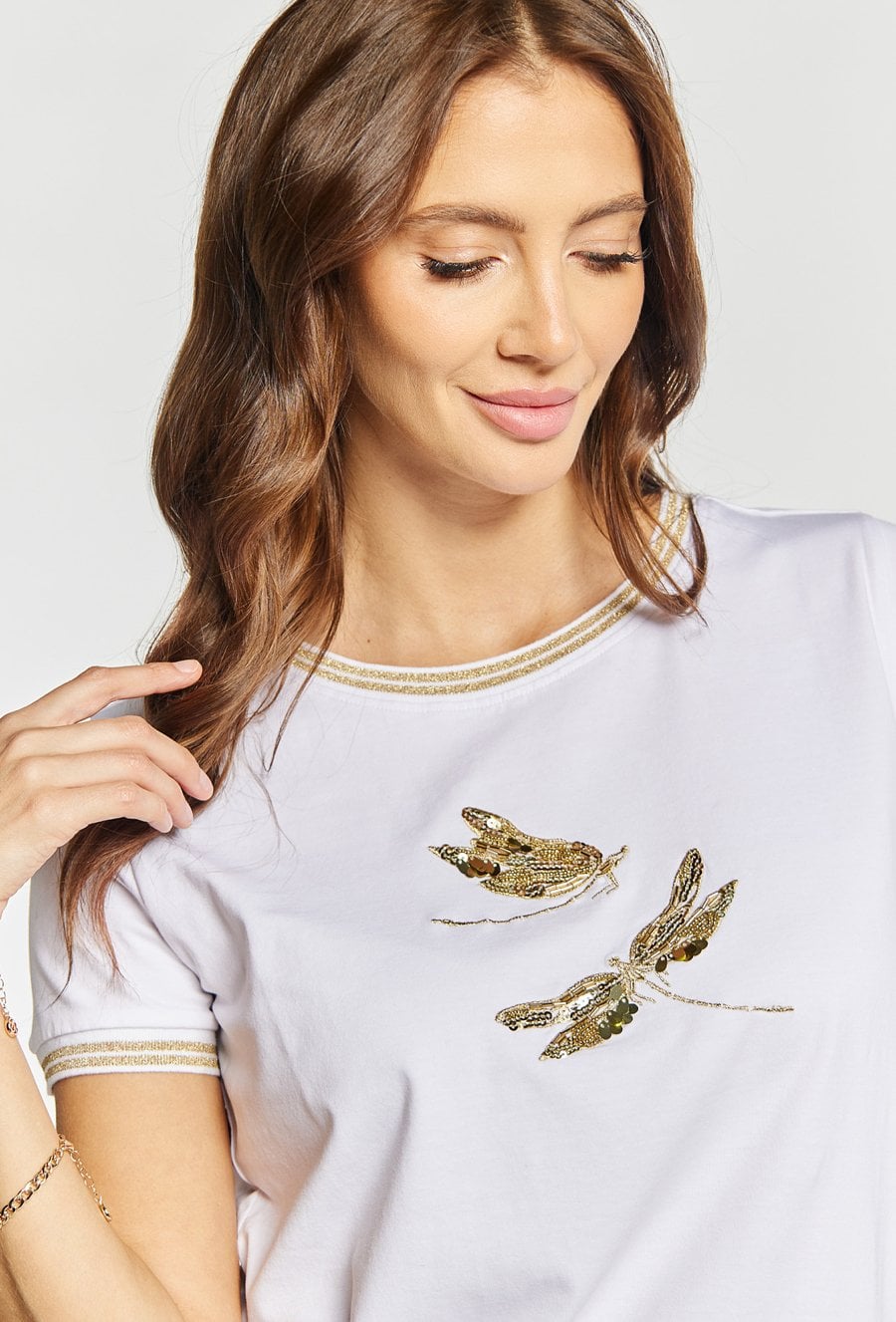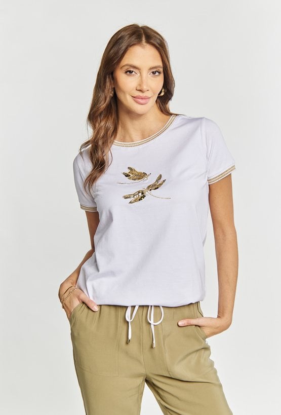 T-shirt damski z małymi dżetami