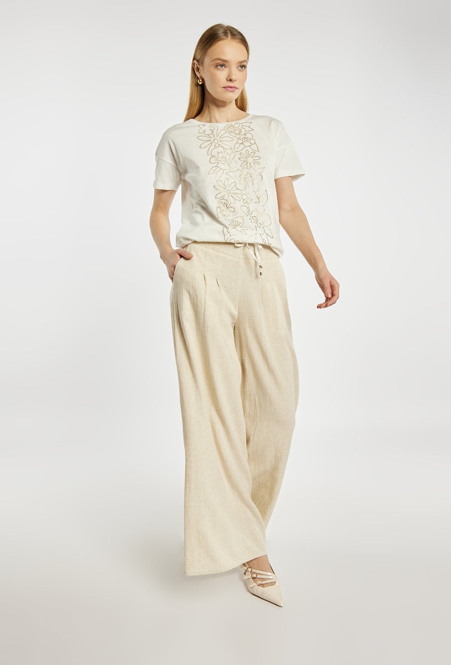 Szerokie spodnie z dodatkiem lnu