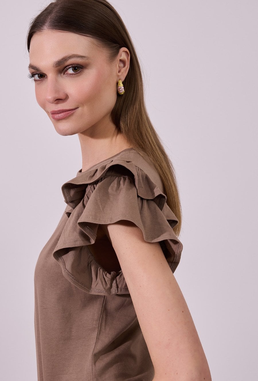 T-shirt z falbanami