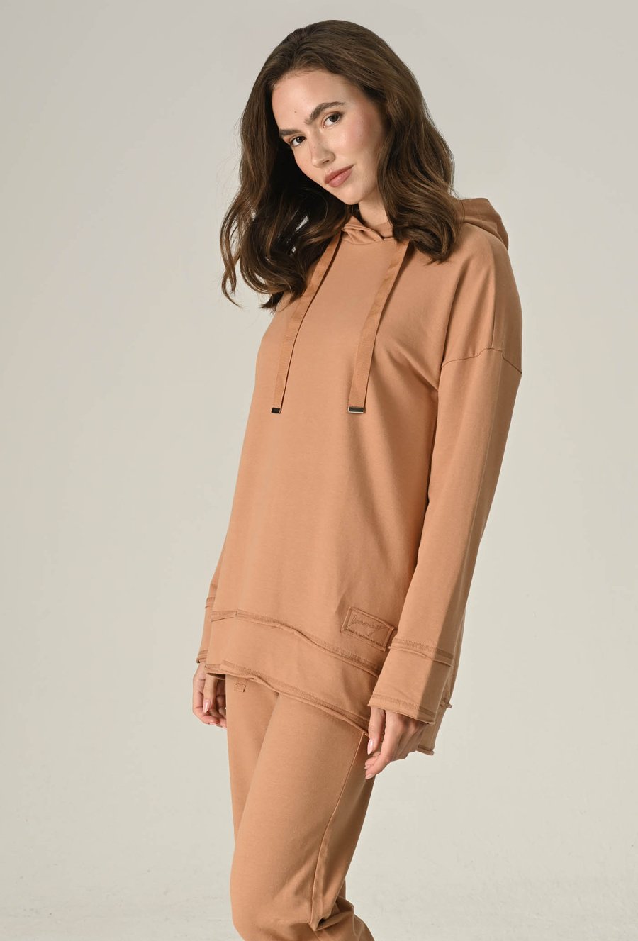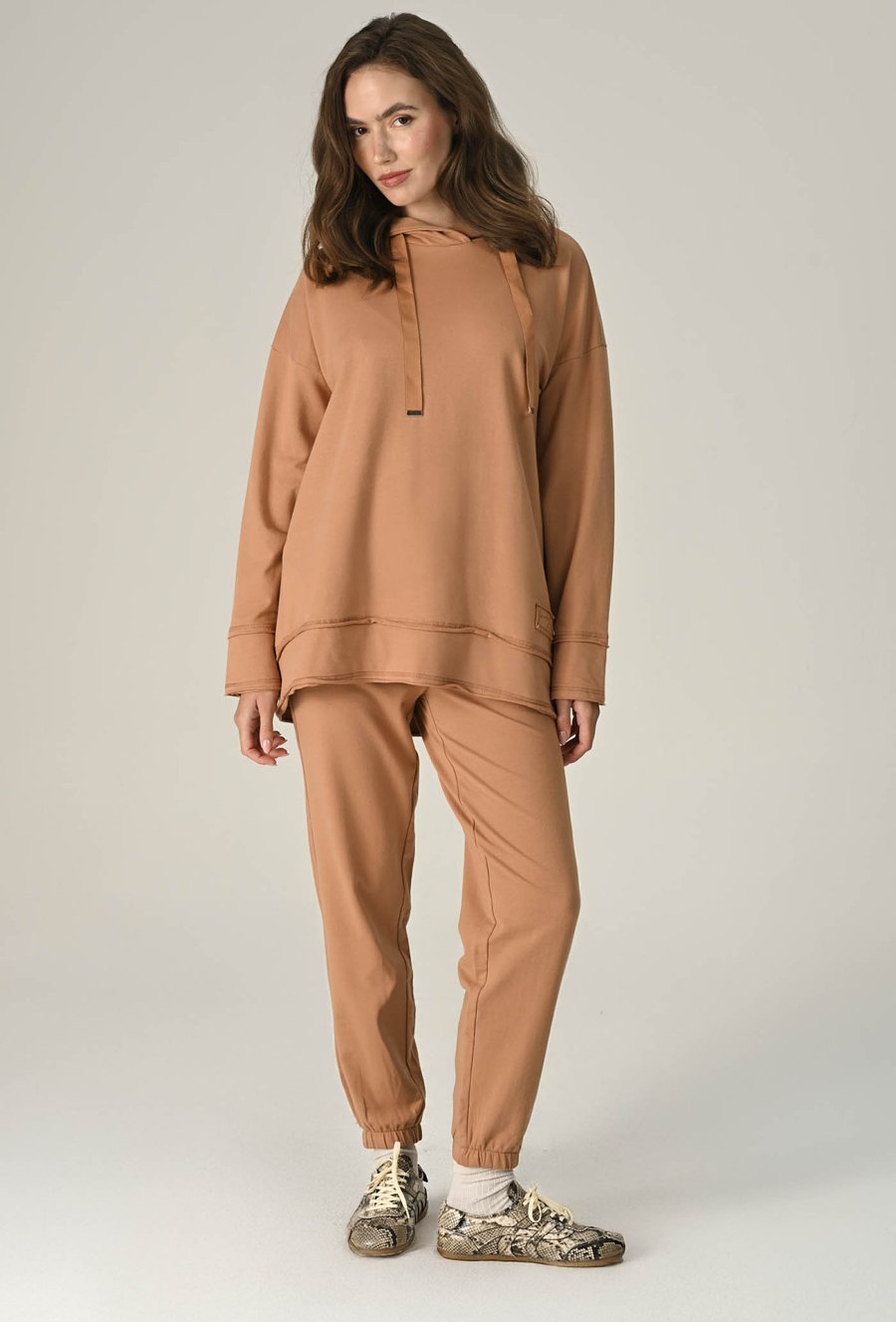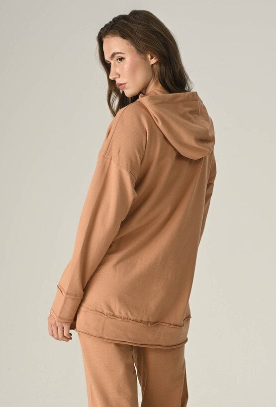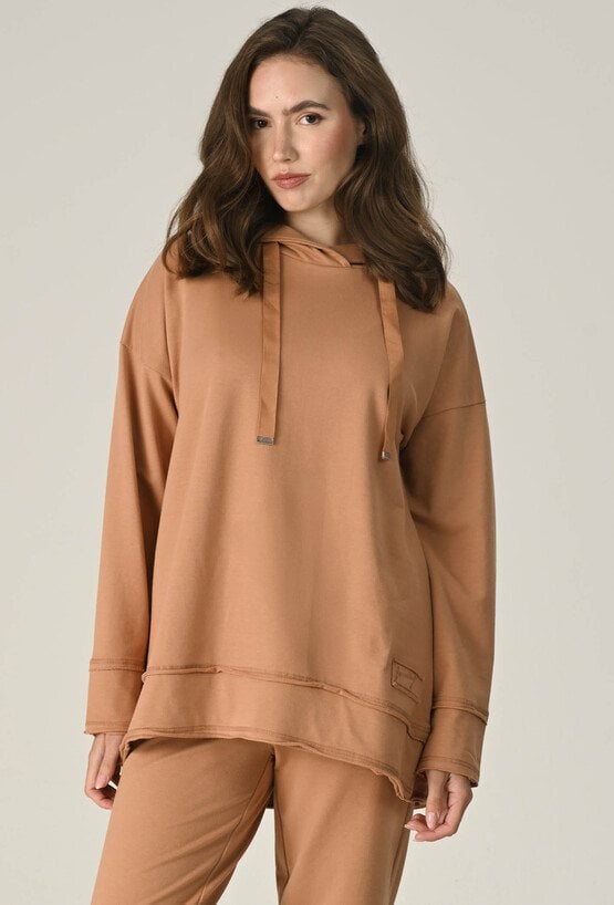 Beżowa luźna bluza z kapturem