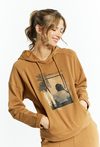 Bluza damska z kapturem. Bluza z długim rękawem z lekko obniżoną linią ramion oraz kieszeniami. Na przodzie znajduje się ciekawy nadruk. Model ten świetnie dopełni wiosenne stylizacje. Modelka na zdjęciu ma 177 cm wzrostu i prezentuje rozmiar S. Uzupełnij swoją stylizację dobierając dół z tej samej linii! Kod do spodni: 24W-TRU0120-K016