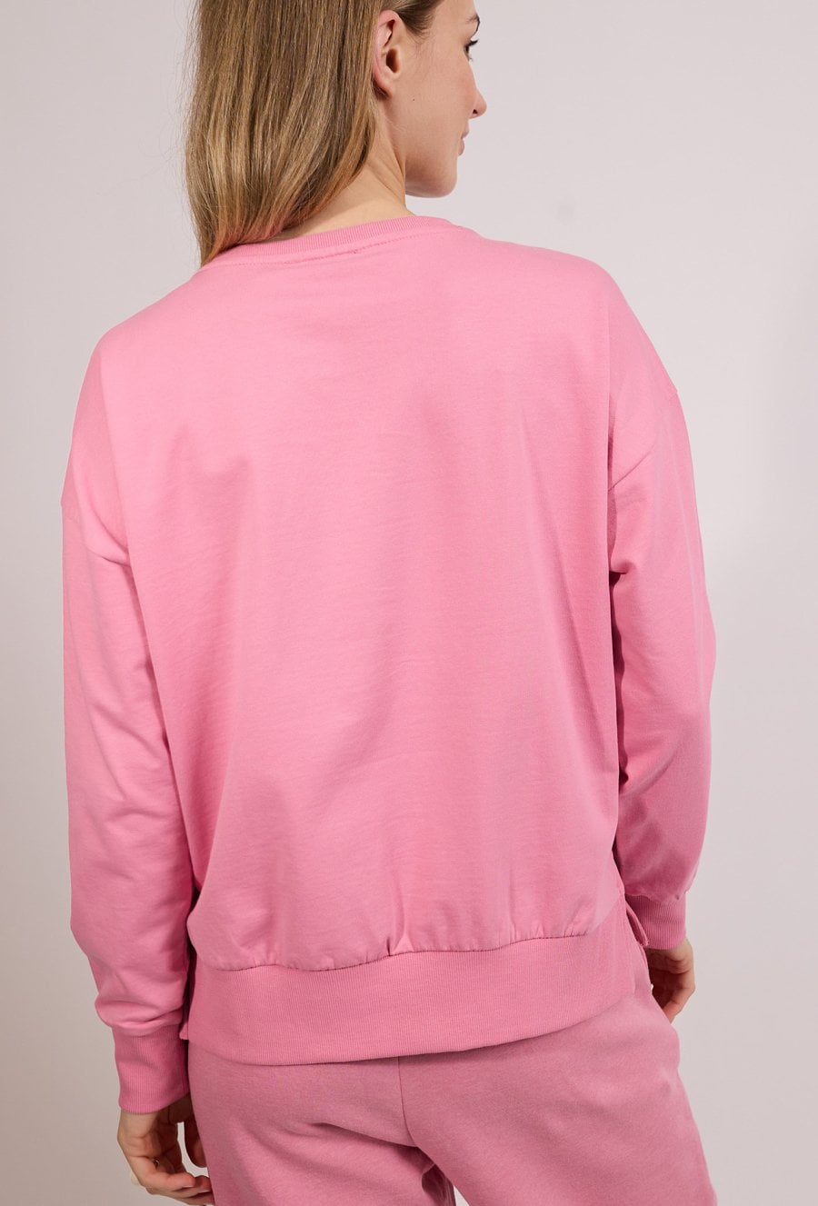 Stylowa bluza damska o luźnym kroju z długim rękawem. Model z okrągłym dekoltem oraz efektownym napisem z przodu, który nadaje całości nowoczesnego charakteru. Bluza doskonale sprawdzi się w codziennych i casualowych stylizacjach, zapewniając komfort i modny wygląd. Modelka na zdjęciu ma 177 cm wzrostu i prezentuje rozmiar S.