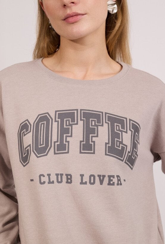 Stylowa bluza damska o luźnym kroju z długim rękawem. Model z okrągłym dekoltem oraz nadrukiem z przodu, który nadaje całości sportowego charakteru. Bluza doskonale sprawdzi się w codziennych i casualowych stylizacjach, zapewniając komfort i modny wygląd. Modelka na zdjęciu ma 177 cm wzrostu i prezentuje rozmiar S.