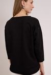 Stylowa bluza damska o luźnym kroju z długim rękawem. Model z okrągłym dekoltem oraz subtelnym zdobieniem w formie kokardy, które nadaje całości delikatnego, kobiecego charakteru. Bluza doskonale sprawdzi się w codziennych i casualowych stylizacjach, zapewniając komfort i wygodę noszenia. Modelka na zdjęciu ma 177 cm wzrostu i prezentuje rozmiar S.