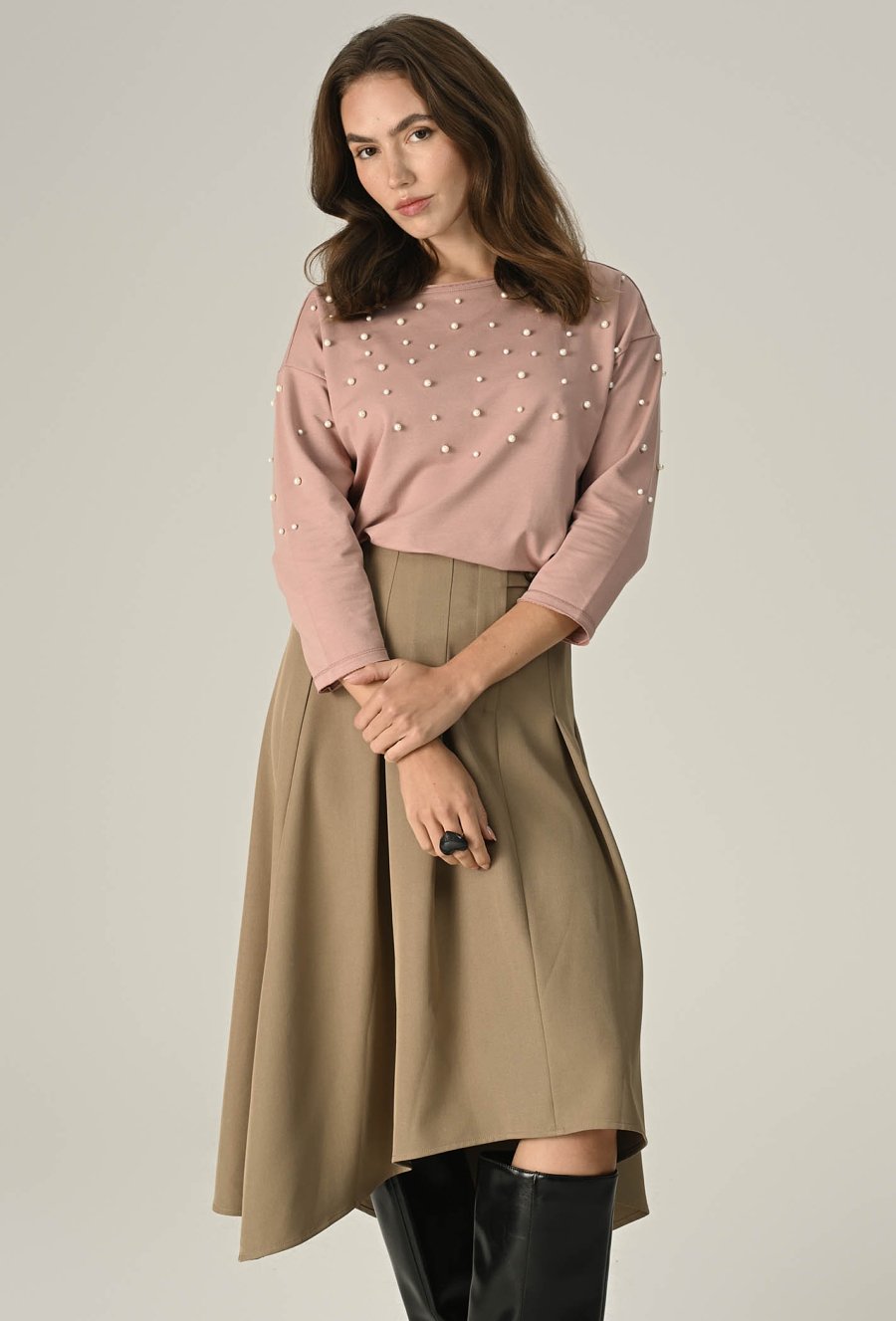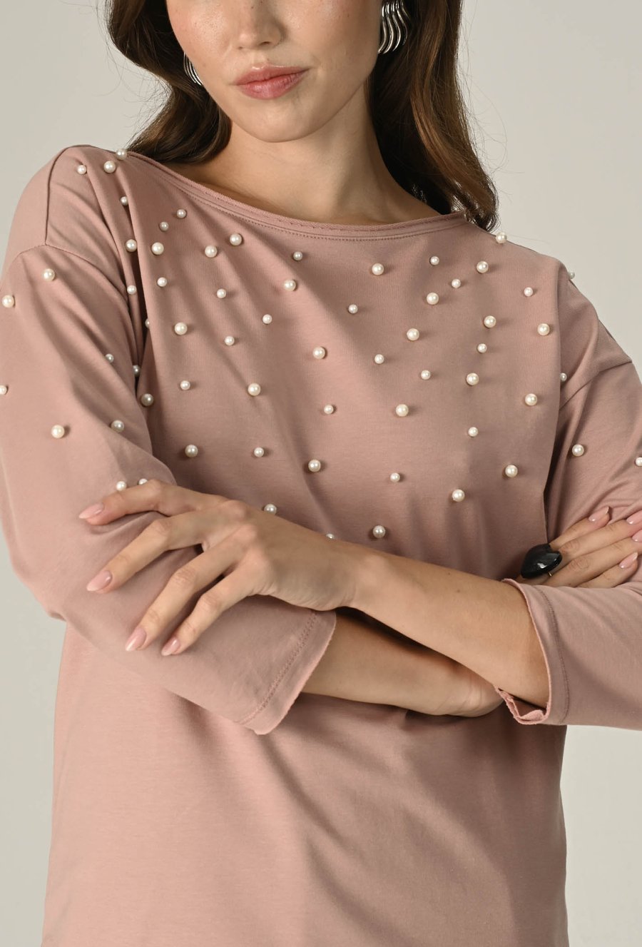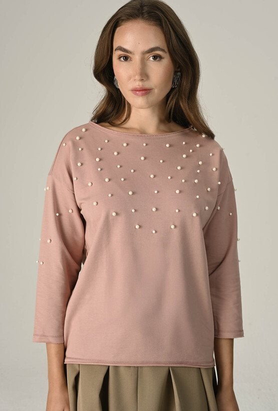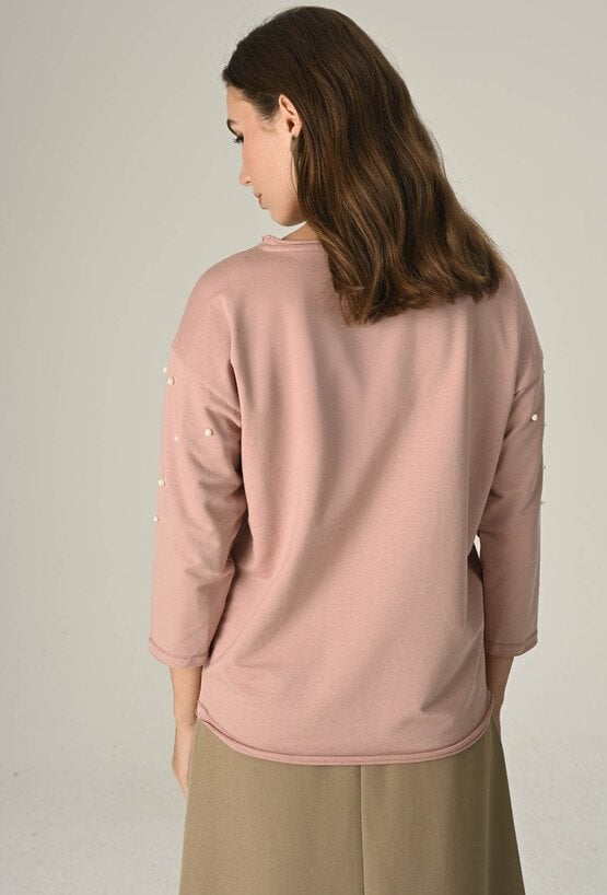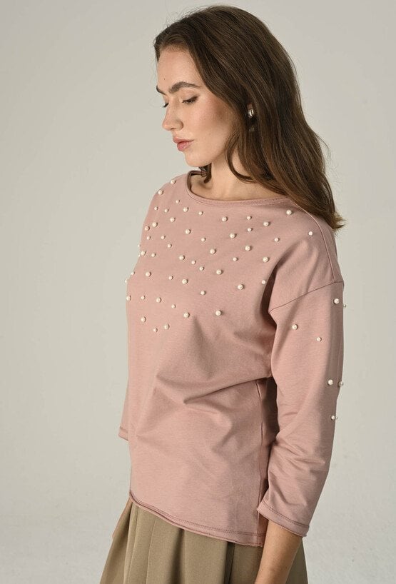 Dzianinowa bluza z perłową aplikacją