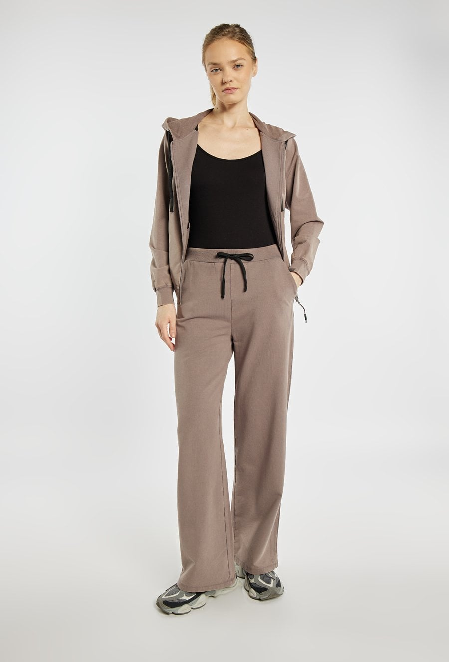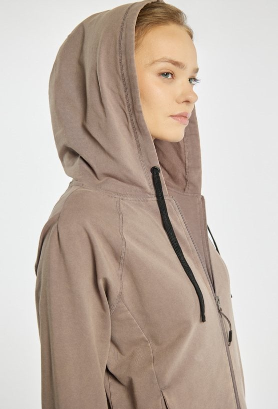 Bluza sportowa o swobodnym kroju, zapinana na suwak, z kapturem i praktycznymi kieszeniami. Idealna na co dzień i do aktywności. Model można zestawić z pasującymi spodniami, tworząc wygodny, spójny komplet. Kod do spodni: 26W-TRU0780. Modelka na zdjęciu ma 177 cm wzrostu i prezentuje rozmiar S.