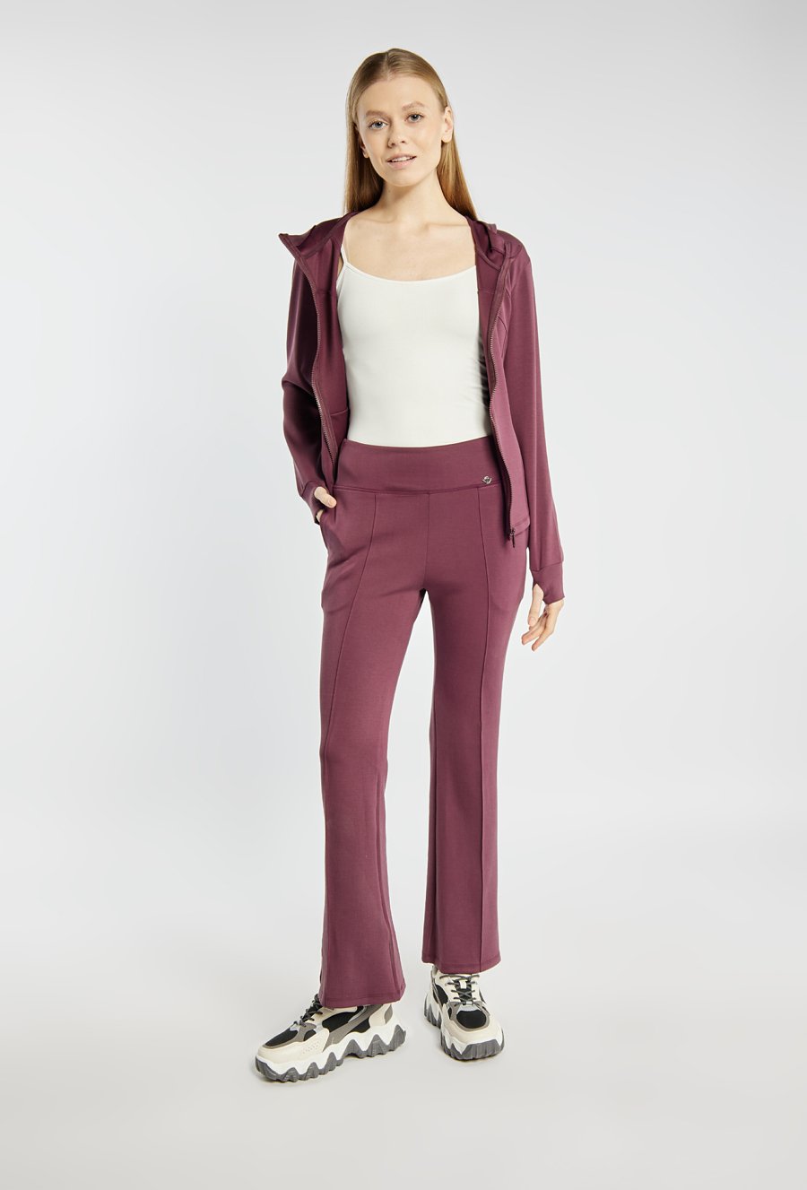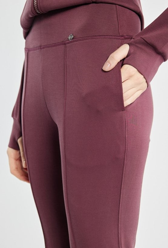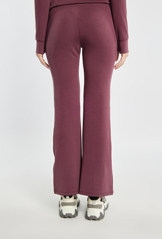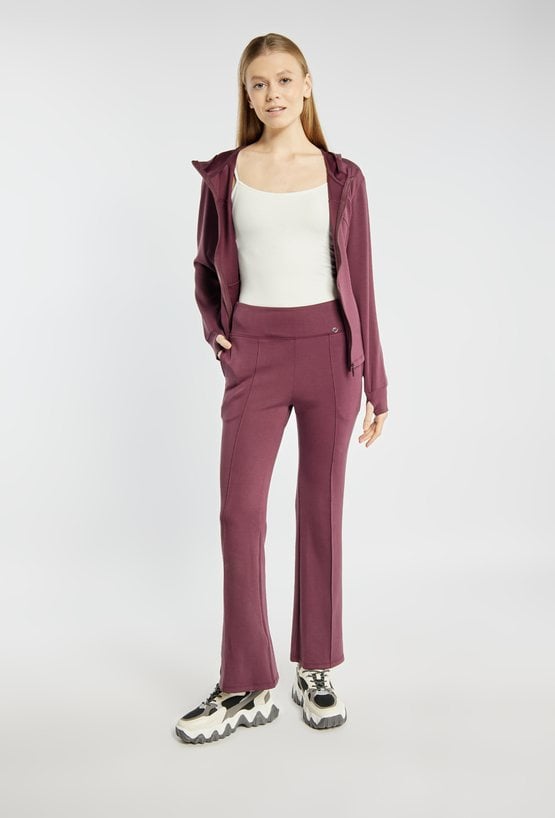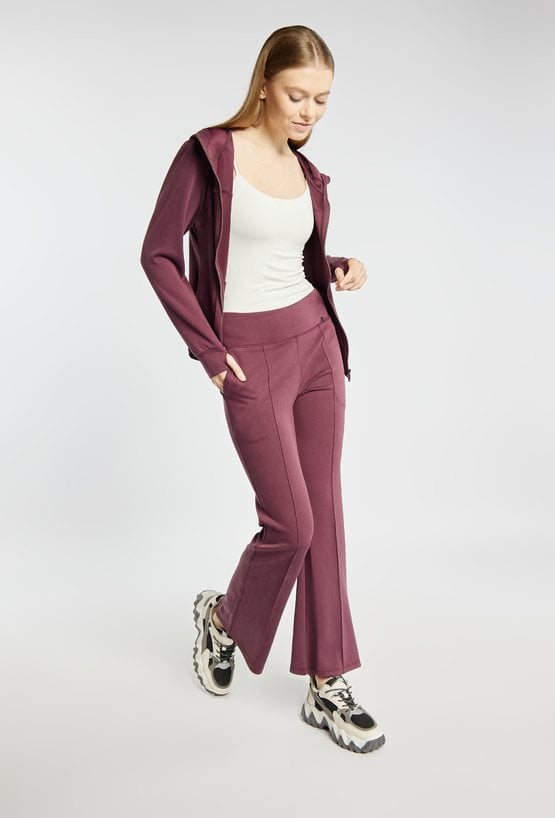 Dresowe spodnie damskie z kolekcji JOY&RELAX. Spodnie z lekko rozszerzaną nogawką, kieszeniami oraz przeszyciami optycznie wydłużającymi sylwetkę. Spodnie świetnie sprawdzą się zarówno w domu, jak i w codziennych, casualowych stylizacjach. Model polecamy zestawić z pasującą bluzą :25J-JUM1350. Modelka na zdjęciu ma 177 cm wzrostu i prezentuje rozmiar S/M.