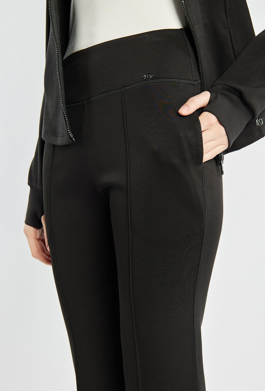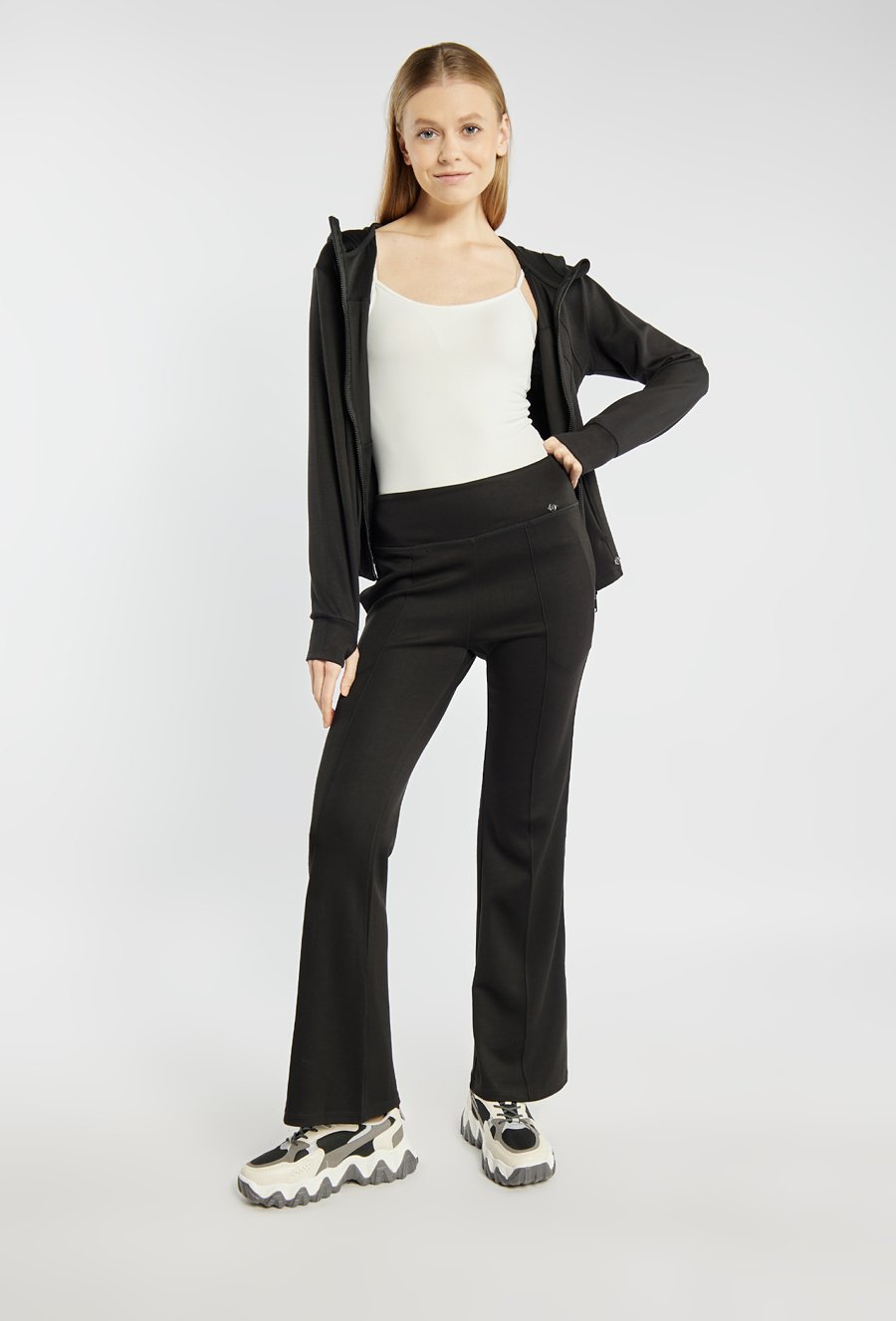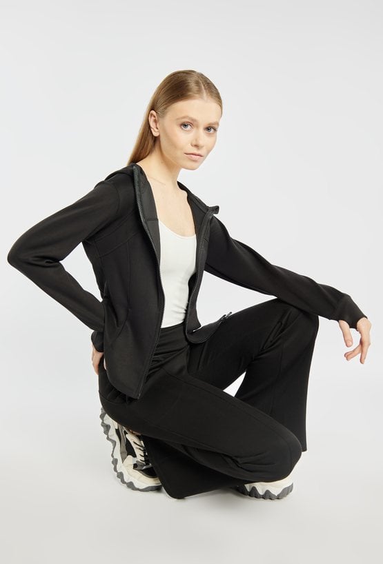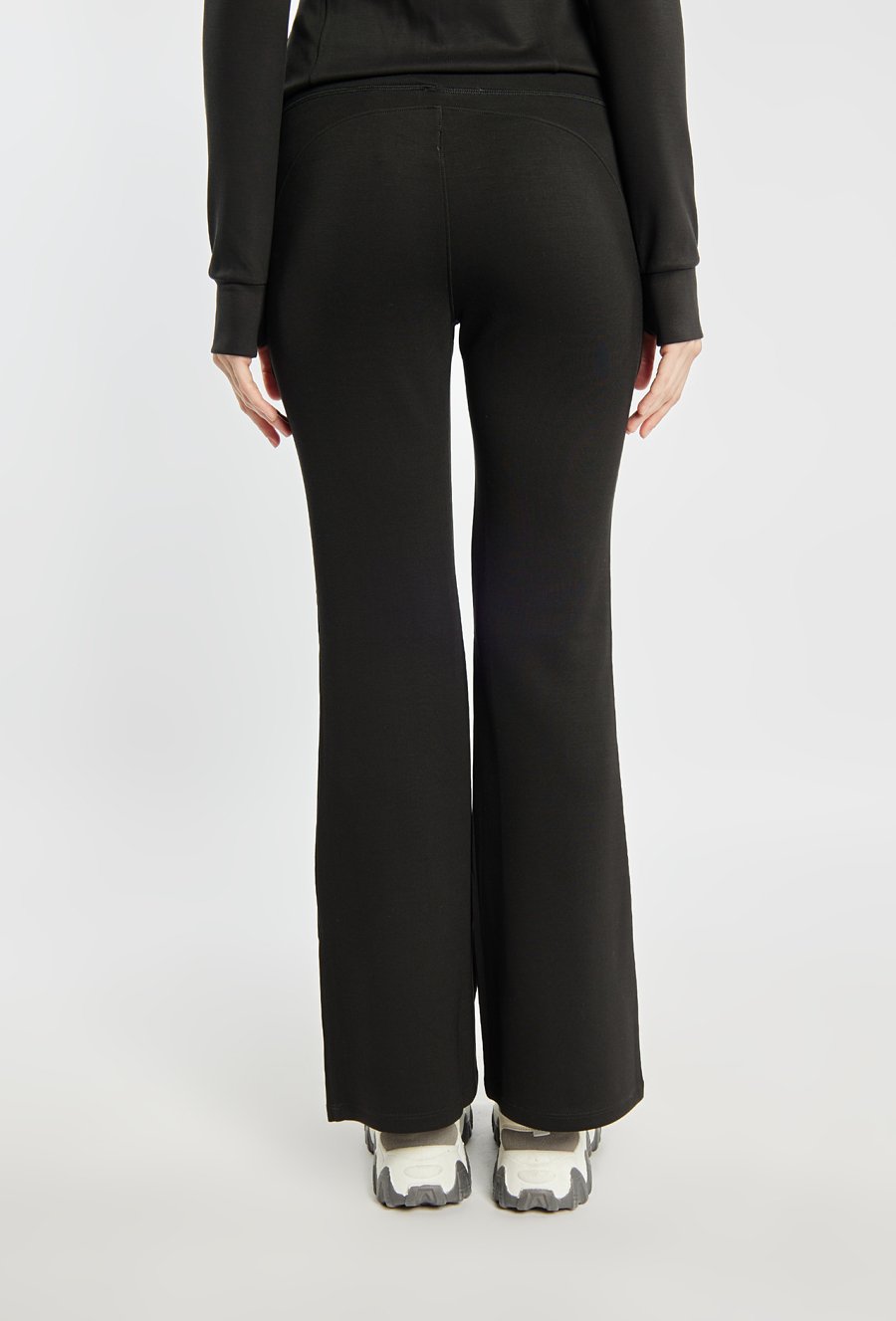 Dresowe spodnie damskie z kolekcji JOY&RELAX. Spodnie z lekko rozszerzaną nogawką, kieszeniami oraz przeszyciami optycznie wydłużającymi sylwetkę. Spodnie świetnie sprawdzą się zarówno w domu, jak i w codziennych, casualowych stylizacjach. Model polecamy zestawić z pasującą bluzą :25J-JUM1350. Modelka na zdjęciu ma 177 cm wzrostu i prezentuje rozmiar S/M.