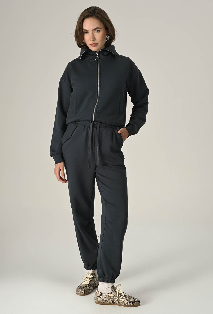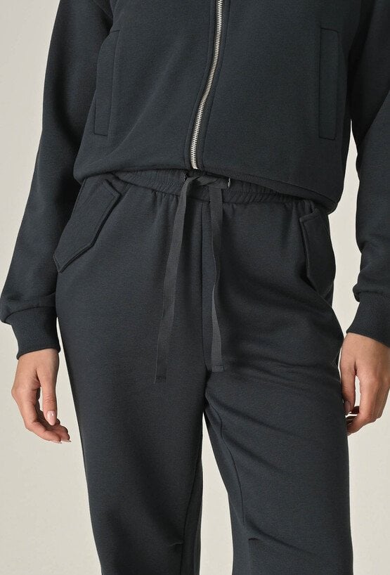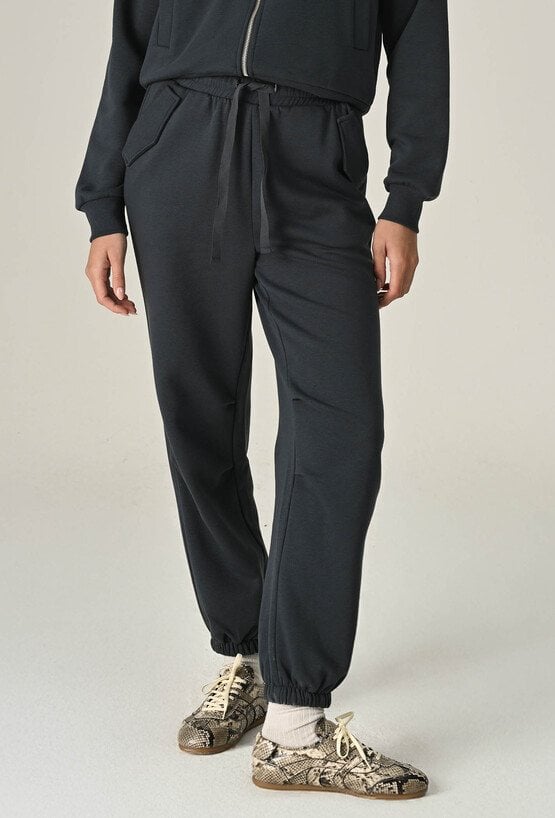 Spodnie dresowe to modna i niesamowicie wygodna propozycja na co dzień. Spodnie wykonane z przyjemnej bawełny, zapewniają maksymalny komfort podczas noszenia. Elastyczna, szeroka gumka w pasie oraz dwie kieszenie na bokach to dodatkowe udogodnienia. Długie, proste nogawki zakończone ściągaczem dodają modnego charakteru temu modelowi Modelka na zdjęciu ma 173 cm wzrostu i prezentuje rozmiar 36.
