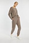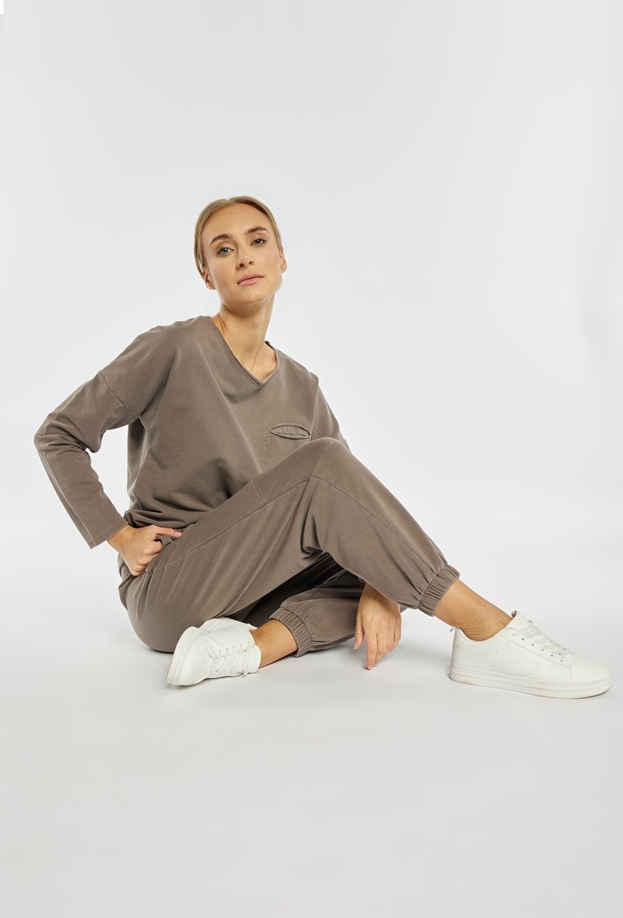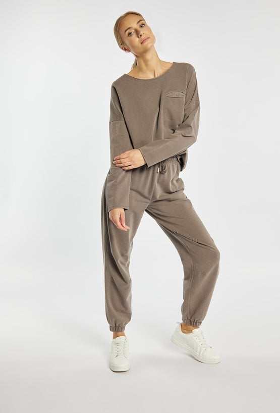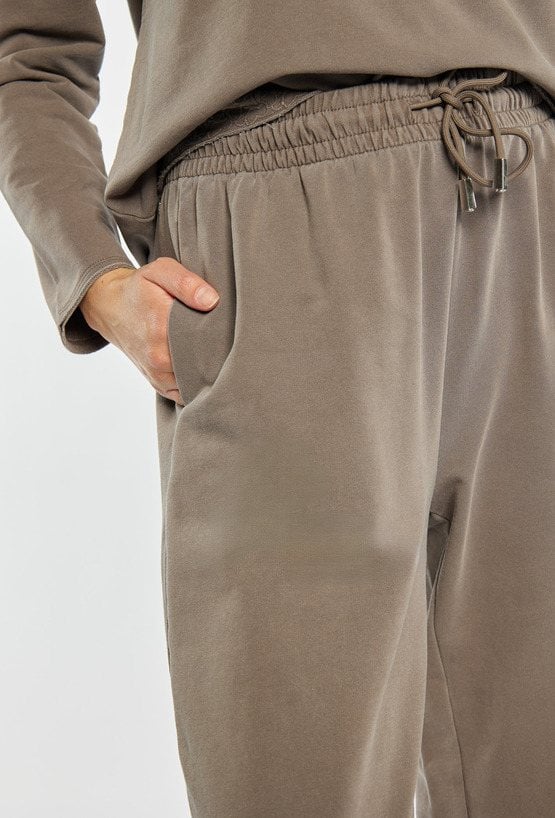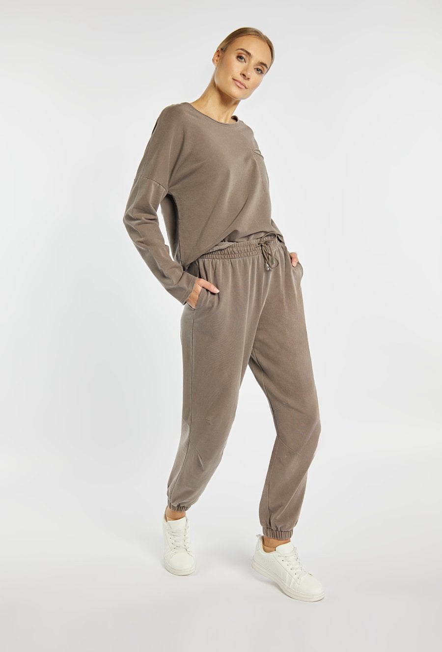 Spodnie damskie z elastyczną talią, troczkiem i ściągaczami przy nogawkach zapewniają komfort noszenia i swobodę ruchów. Spodnie dresowe o nowoczesnym kroju to idealne połączenie wygody i stylu. Można je zestawić z pasującą bluzą, tworząc spójny, modny komplet. Kod do bluzy 26W-JUM0010. Modelka na zdjęciu ma 177 cm wzrostu i prezentuje rozmiar S.
