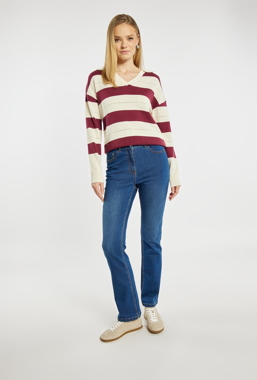 Jeansy damskie o klasycznym, prostym kroju. Model z regularnym stanem i długimi nogawkami, które zapewniają komfort noszenia i ponadczasowy wygląd. Doskonały wybór do codziennych stylizacji. Modelka na zdjęciu ma 177 cm wzrostu i prezentuje rozmiar 36.