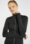 Bluza z kolekcji sportowej o dopasowanym kroju, zapinana na zamek, z długim rękawem i podwyższoną stójką. Bluza została wykonana z elastycznego, komfortowego materiału, który dobrze dopasowuje się do sylwetki i zapewnia swobodę ruchów podczas aktywności. Bluza sprawdzi się zarówno podczas treningu, jak i na co dzień w sportowych stylizacjach, a dla pełnego zestawu można ją połączyć z legginsami. Kod do spodni: 26W-TRU0770. Modelka na zdjęciu ma 177 cm wzrostu i prezentuje rozmiar S.