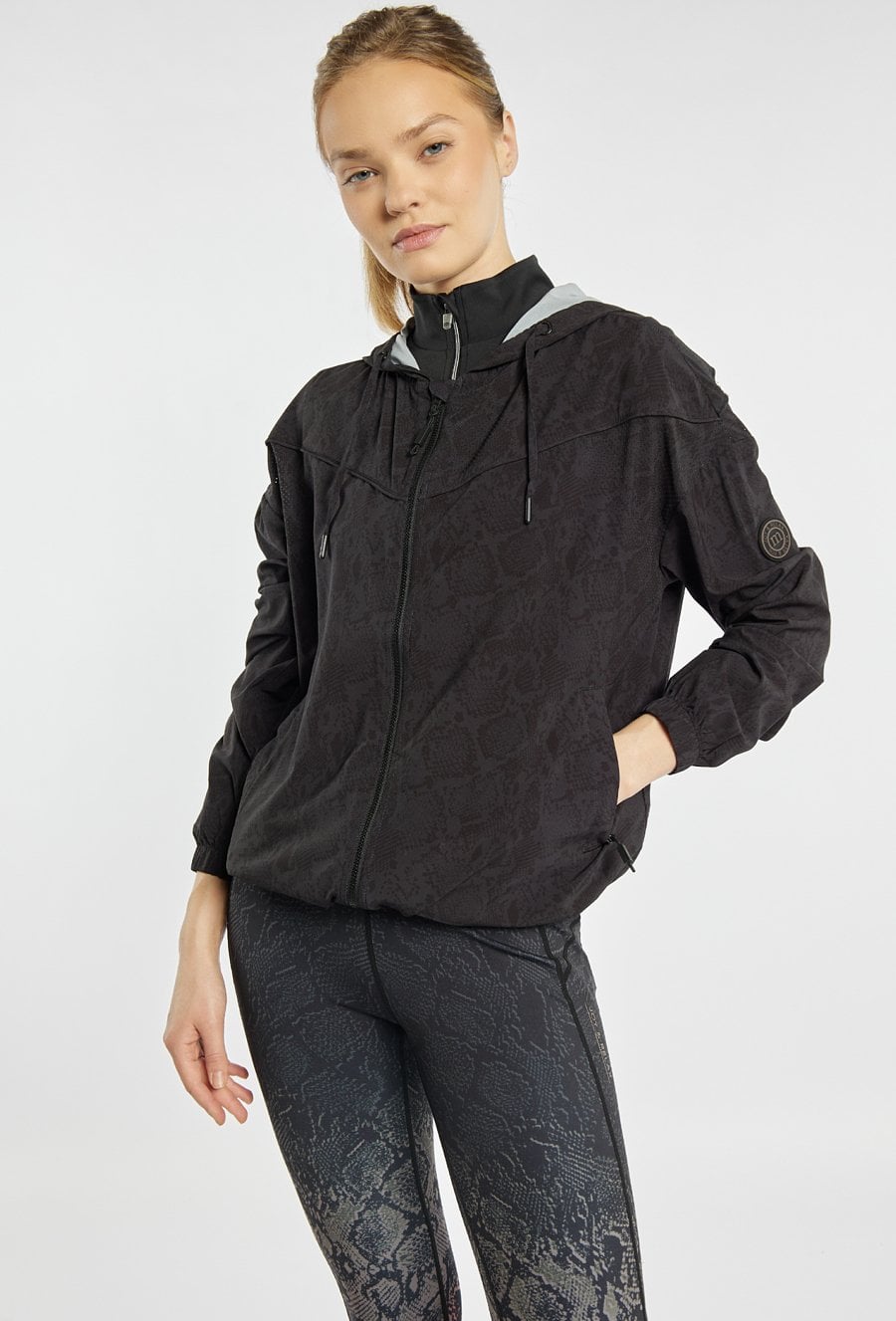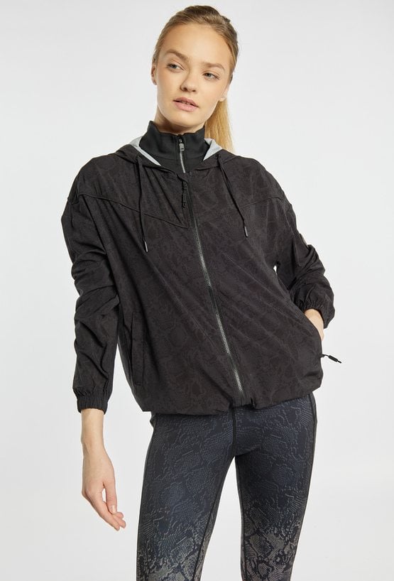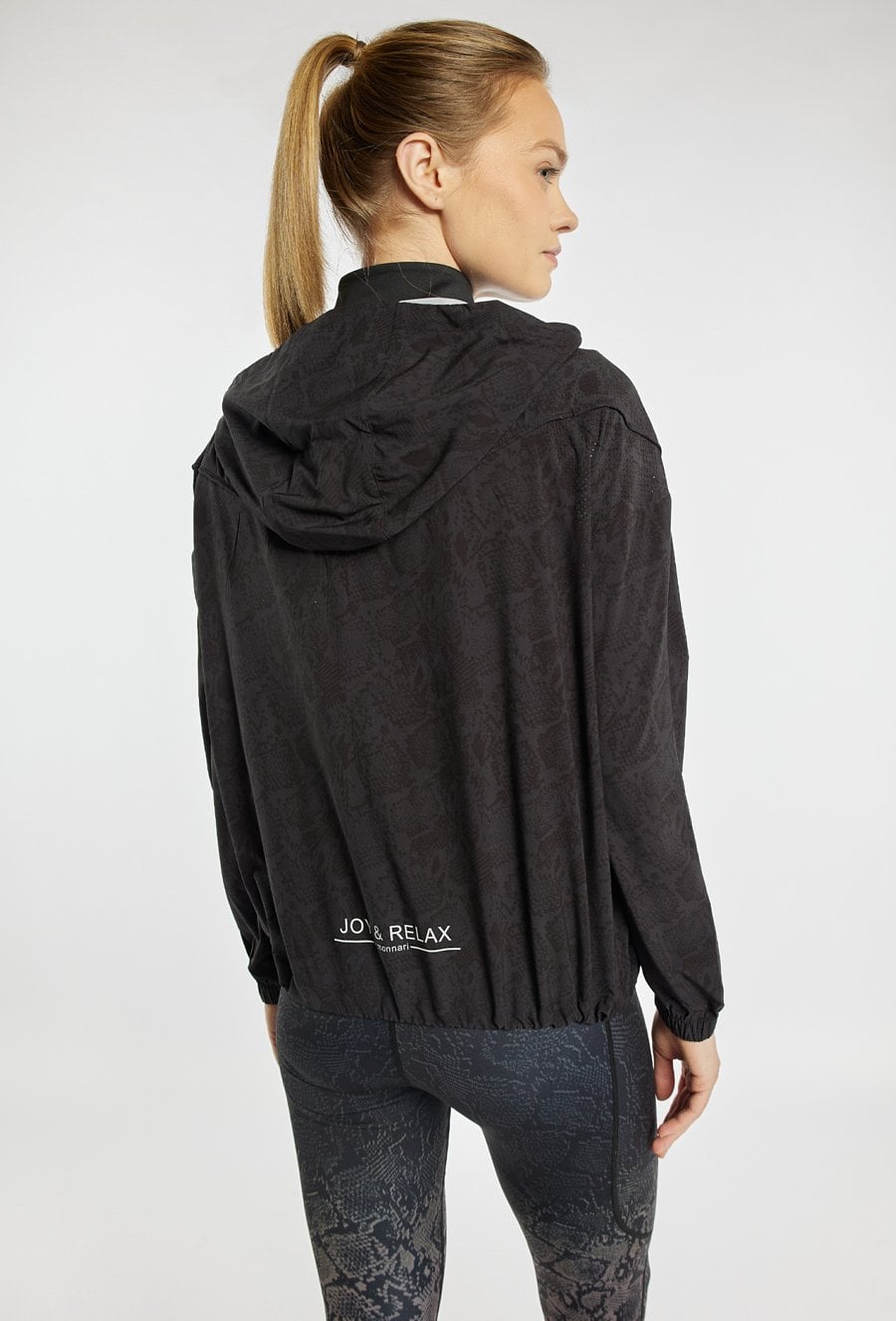 Kurtka sportowa z kolekcji JOY&RELAX o lekkim, wygodnym fasonie. Model z kapturem, zapinany na suwak, wykonany z miękkiego materiału z delikatnym wzorem, który nadaje całości nowoczesnego charakteru. Długie rękawy zakończone gumką oraz dół z elastycznym wykończeniem zapewniają komfort noszenia i dobre dopasowanie. Kurtka sprawdzi się zarówno podczas aktywności, jak i w codziennych, casualowych stylizacjach, można ją zestawić z pasującymi legginsami lub spodniami sportowymi z tej samej kolekcji. Modelka na zdjęciu ma 177 cm wzrostu i prezentuje rozmiar S.