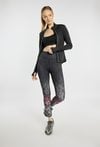 Legginsy z kolekcji sportowej o dopasowanym kroju, który dobrze układa się na sylwetce i zapewnia swobodę ruchów podczas aktywności. Elastyczny pas gwarantuje komfort noszenia, a wzorzysta struktura materiału dodaje całości nowoczesnego charakteru. Legginsy sprawdzą się zarówno podczas treningu, jak i w codziennych, sportowych stylizacjach. Legginsy można zestawić z pasującą bluzą. Kod do bluzy: 26W-JUM0470. Modelka na zdjęciu ma 177 cm wzrostu i prezentuje rozmiar S.