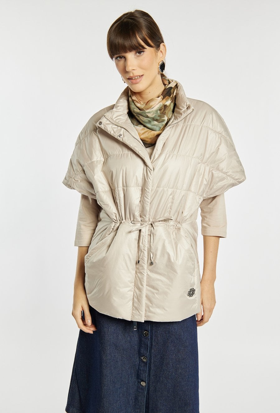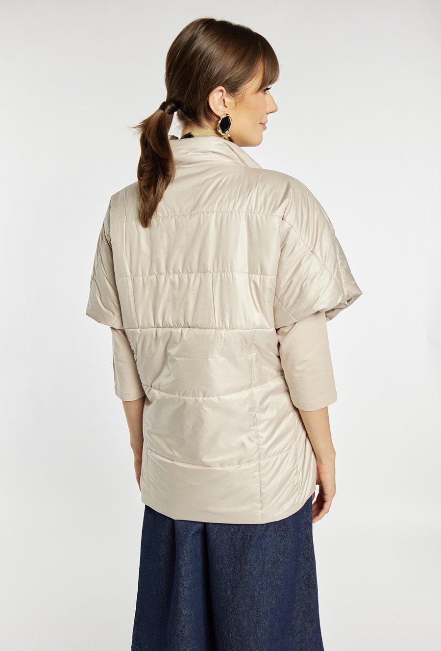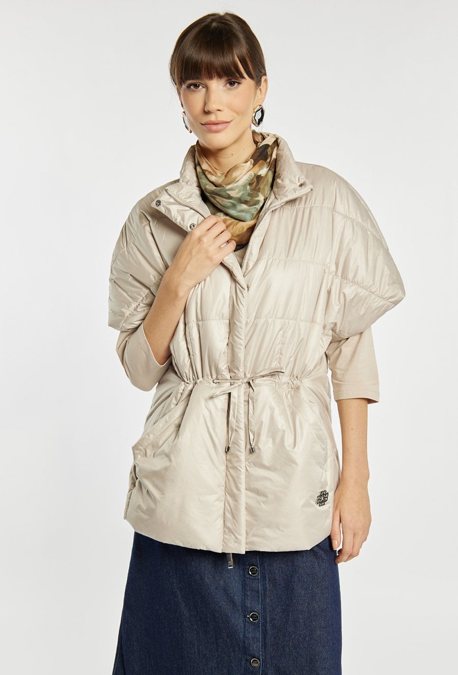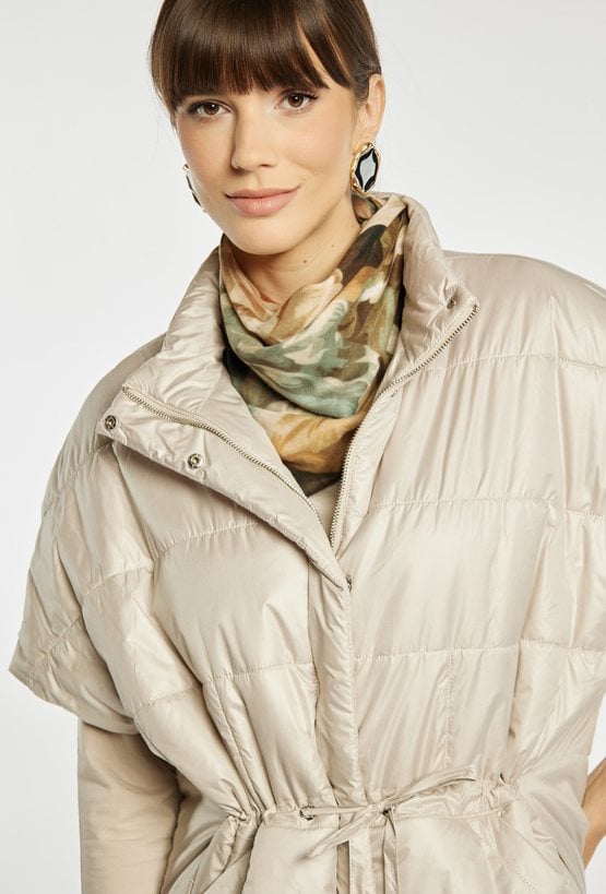 Luźna kamizelka damska z efektownym pikowaniem. Kamizelka ma kieszenie oraz ściągacze w talii, które pozwalają dopasować ją do sylwetki. Kamizelka świetnie uzupełni wiosenne stylizacje. Modelka na zdjęciu ma 177 cm wzrostu i prezentuje rozmiar S/M.