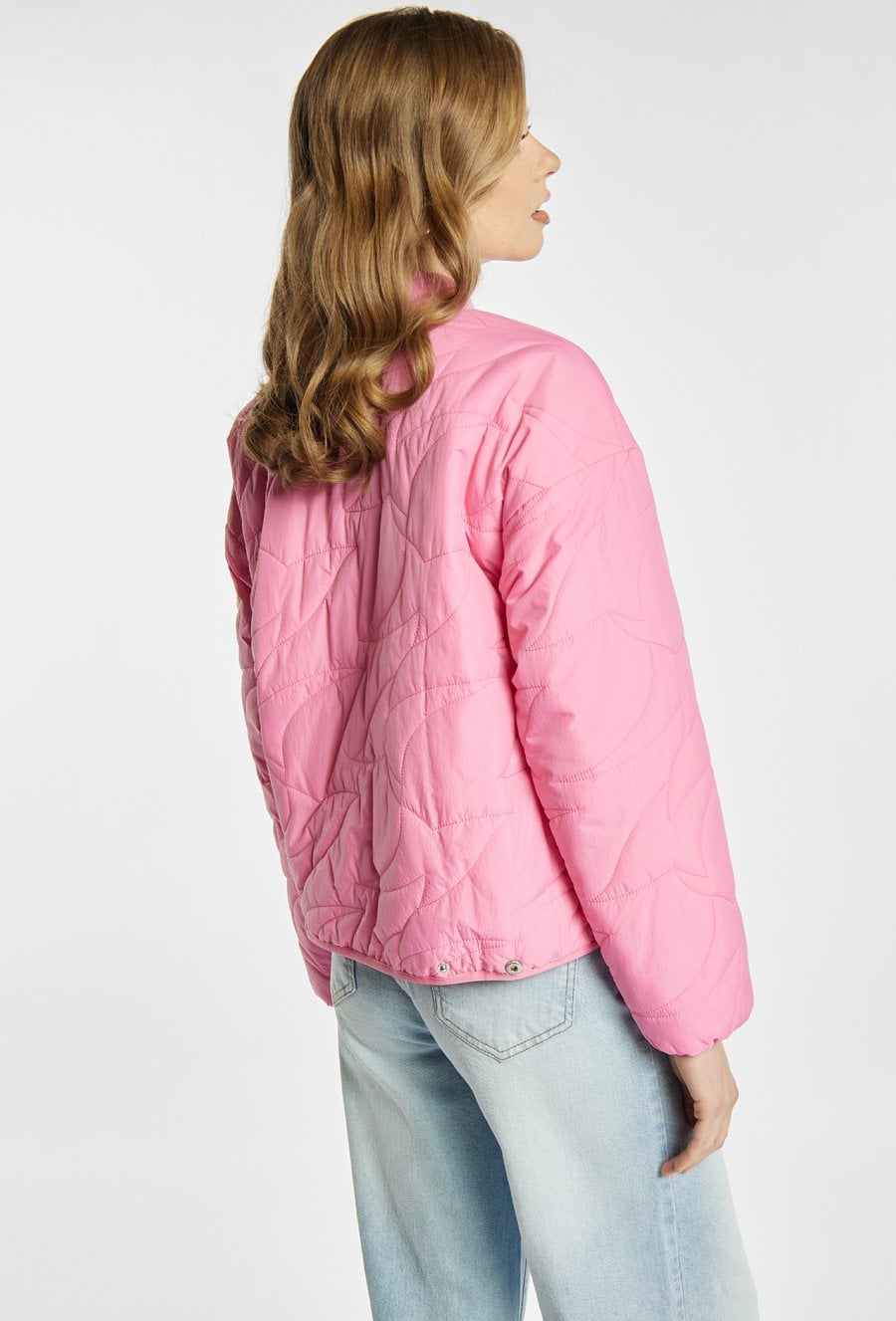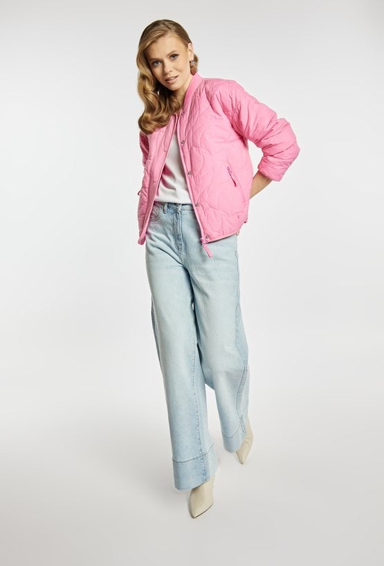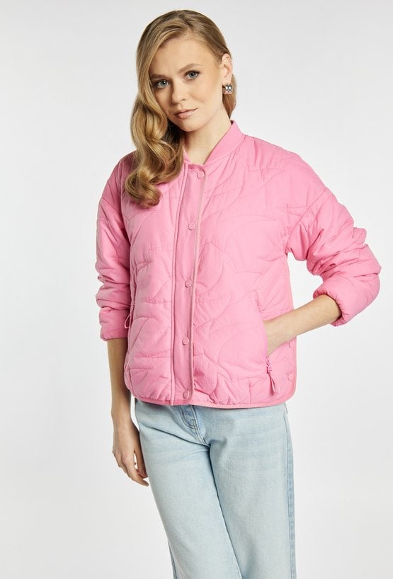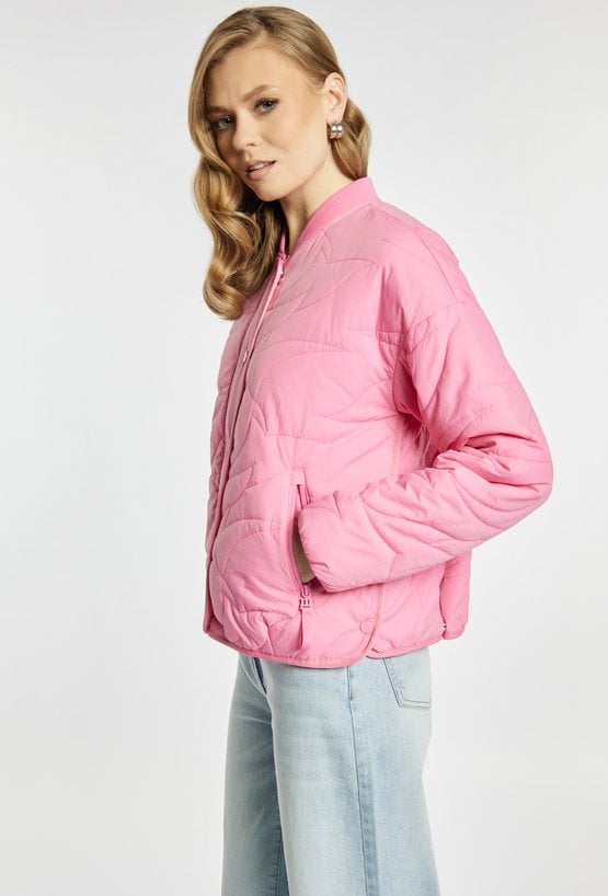 Kurtka damska o krótszym, lekkim kroju z dekoracyjnym pikowaniem. Kurtka ma zapinany na napy front oraz praktyczne kieszenie. Kurtka świetnie uzupełni casualowe, wiosenne stylizacje, dodając im świeżości i nowoczesnego charakteru. Modelka na zdjęciu ma 177 cm wzrostu i prezentuje rozmiar 36.