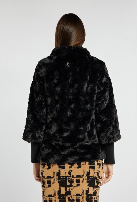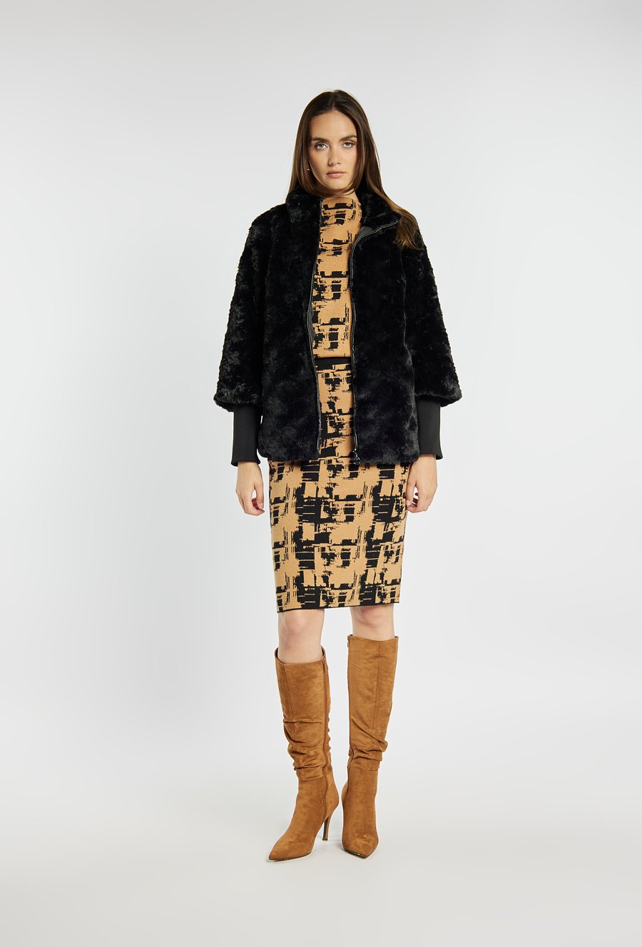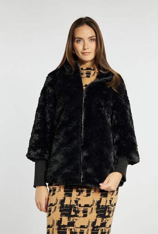 Kurtka z miękkiego, sztucznego futerka to stylowa i przytulna propozycja na chłodniejsze dni. Kurtka zapinana na suwak, z wygodnymi kieszeniami i prążkowanymi ściągaczami przy rękawach. Świetnie sprawdzi się w codziennych stylizacjach, dodając im nuty elegancji i ciepła. Modelka na zdjęciu ma 177 cm wzrostu i prezentuje rozmiar 36.