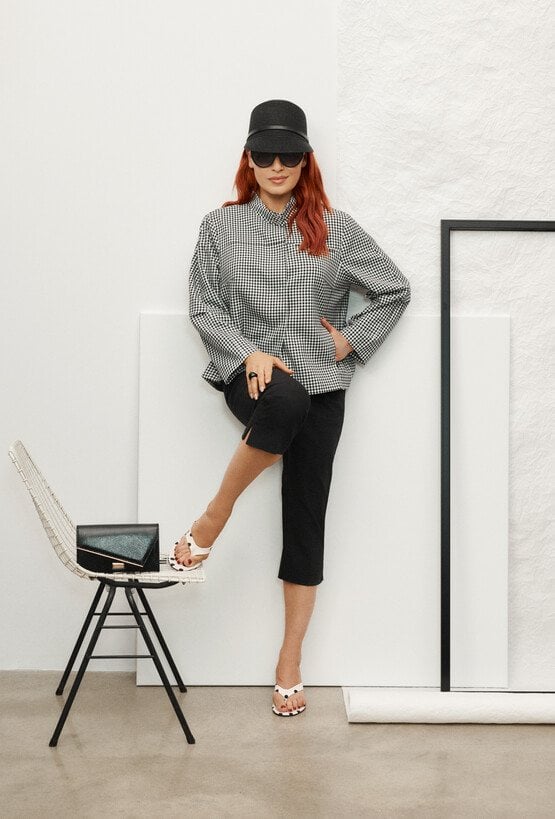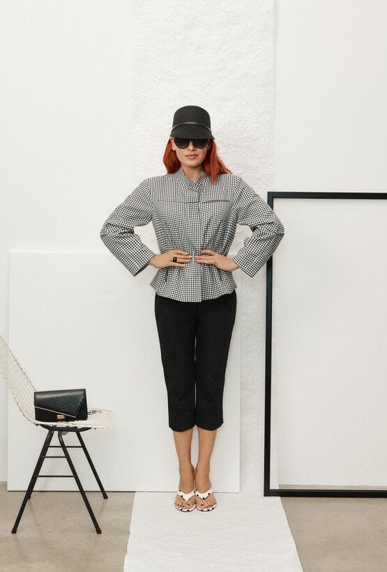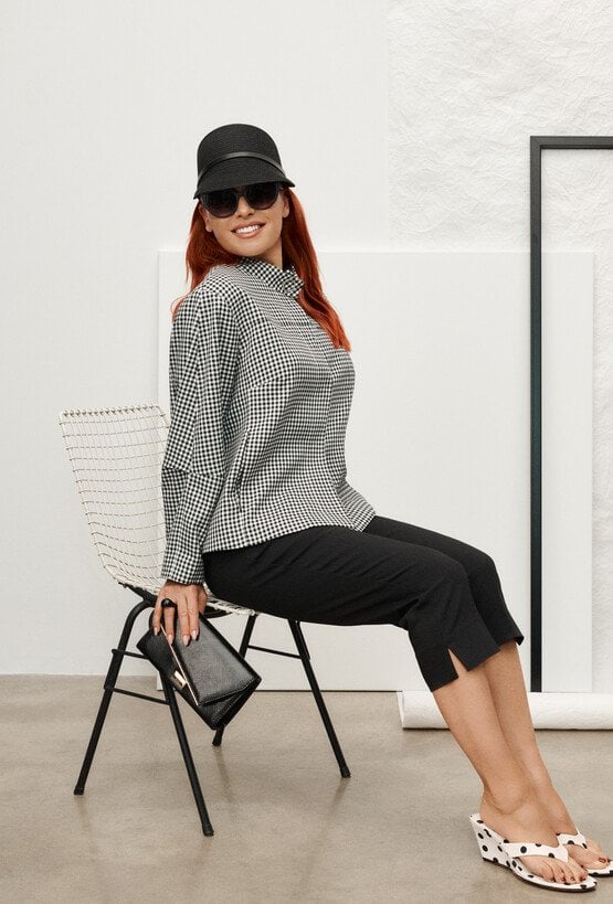 Kurtka damska o krótkim, swobodnym kroju z długim rękawem. Model z klasycznym kołnierzykiem oraz zapięciem z przodu, który nadaje całości stylowego, casualowego charakteru. Całość zdobi ponadczasowy wzór w drobną kratkę, dodający elegancji i modowego wyrazu. Idealna do codziennych stylizacji, łącząc wygodę z klasycznym stylem. Modelka na zdjęciu ma 177 cm wzrostu i prezentuje rozmiar 36.