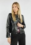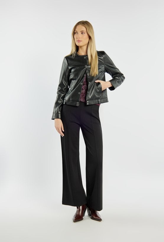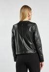 Kurtka damska o prostym kroju. Kurtka z okrągłym dekoltem i kieszeniami po bokach. Stylowa propozycja do codziennych i wieczorowych stylizacji. Modelka na zdjęciu ma 177 cm wzrostu i prezentuje rozmiar 36.