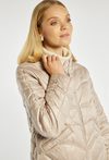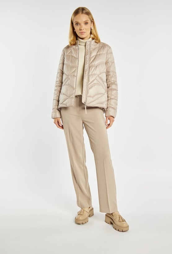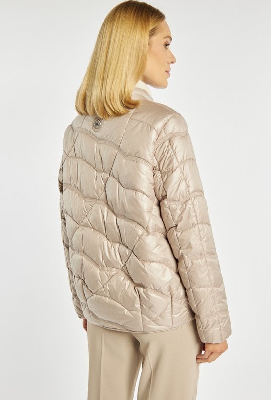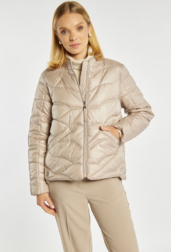 Lekka pikowana kurtka o krótszym kroju, idealna na przejściowe pory roku. Kurtka ma po bokach subtelne rozcięcia zapinane na napy, które ułatwiają dopasowanie i zwiększają wygodę podczas noszenia. Prosty fason i stójka tworzą nowoczesny, minimalistyczny look. Modelka na zdjęciu ma 177 cm wzrostu i prezentuje rozmiar 36.