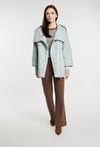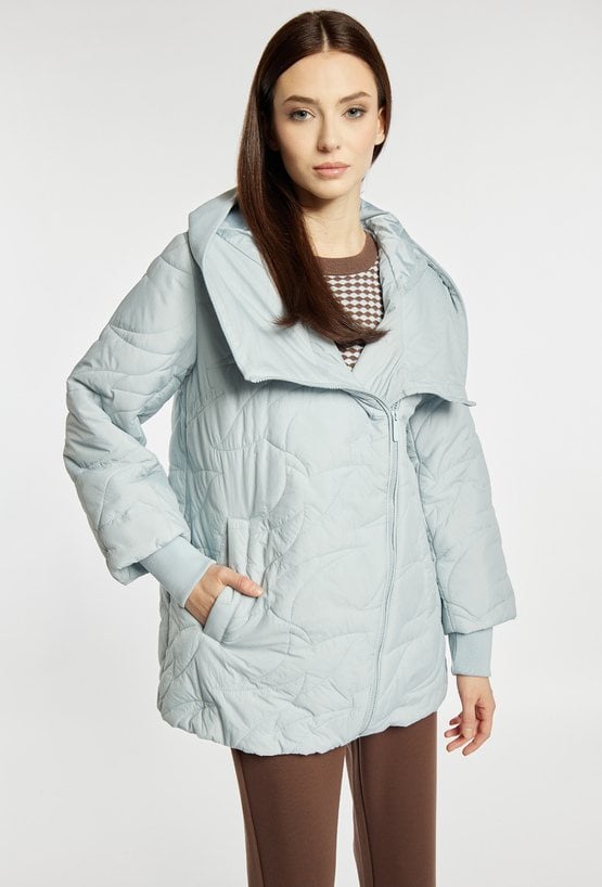 Pikowana kurtka damska z obszernym, efektownym kołnierzem. Kurtka ma wygodny zamek z przodu, praktyczne kieszenie oraz delikatnie obniżoną linię ramion, co dodaje jej nowoczesnego charakteru. Idealna do codziennych, casualowych stylizacji. Modelka na zdjęciu ma 177 cm wzrostu i prezentuje rozmiar 36.