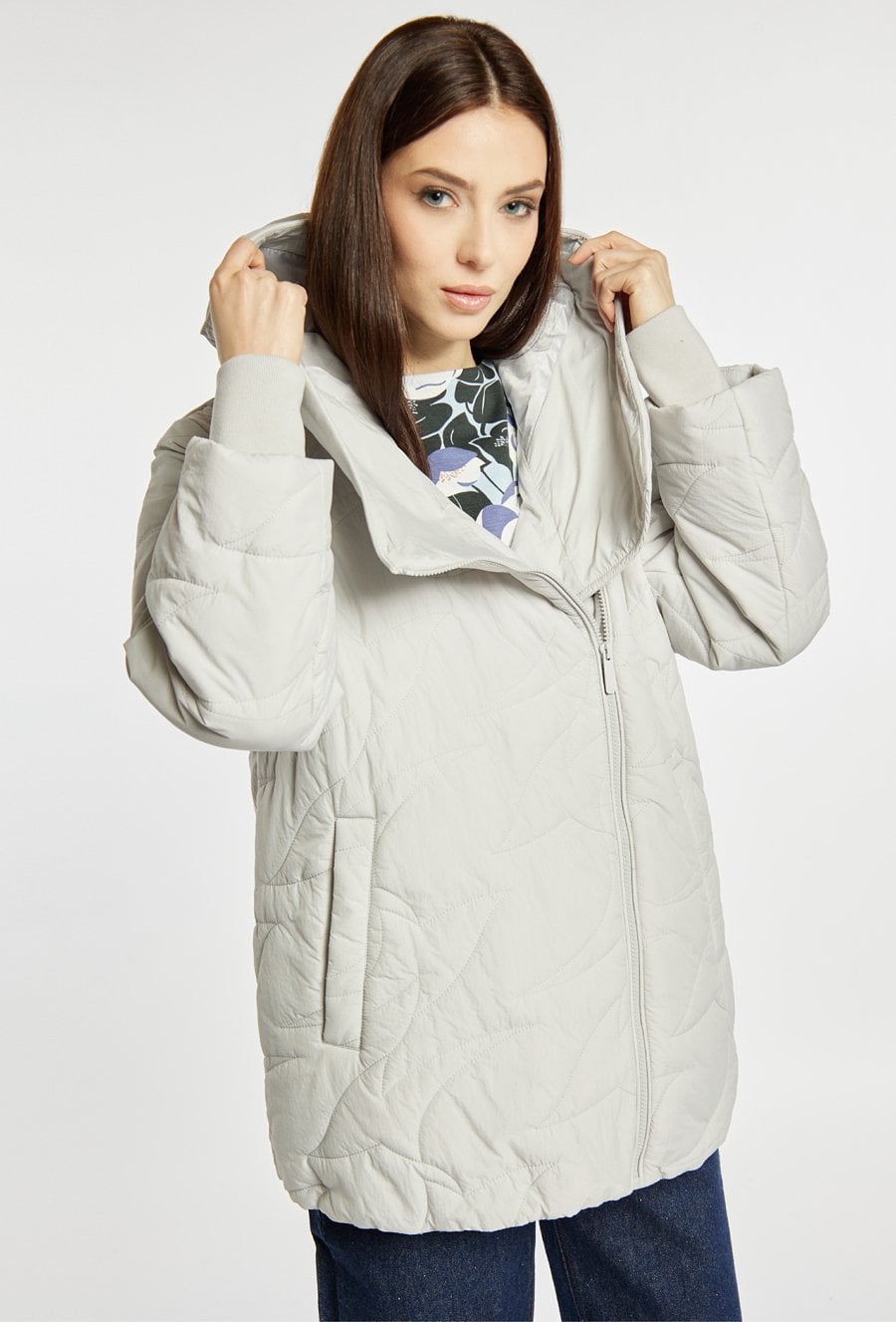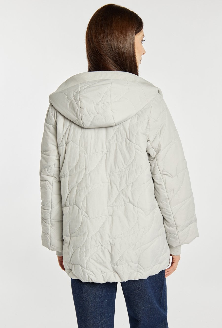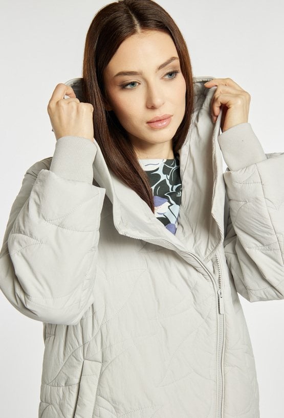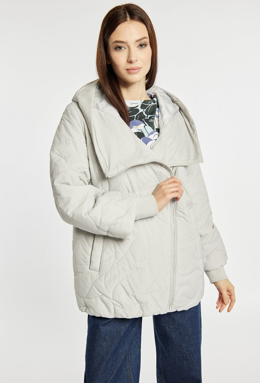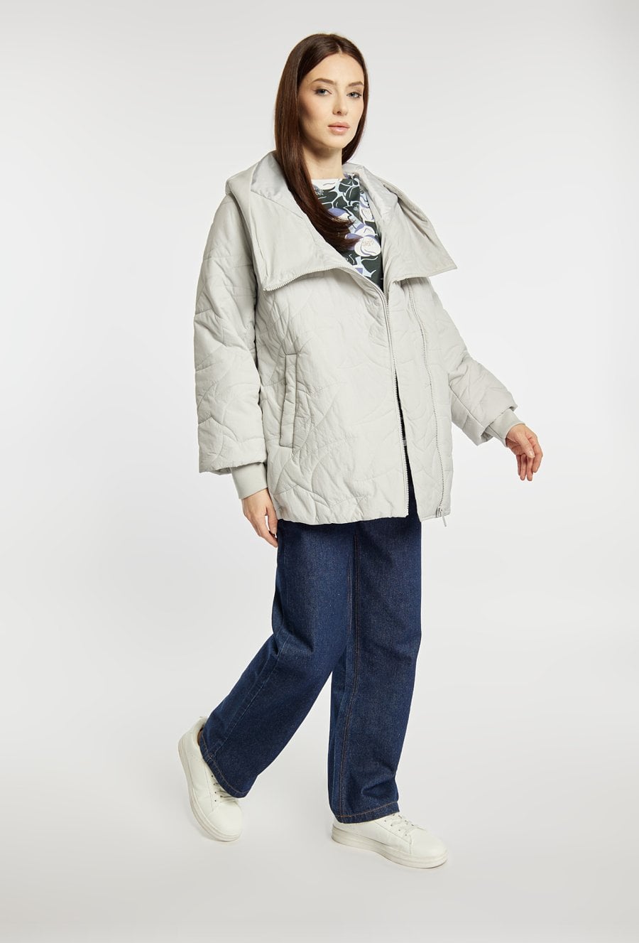 Pikowana kurtka damska z obszernym, efektownym kołnierzem. Kurtka ma wygodny zamek z przodu, praktyczne kieszenie oraz delikatnie obniżoną linię ramion, co dodaje jej nowoczesnego charakteru. Idealna do codziennych, casualowych stylizacji. Modelka na zdjęciu ma 177 cm wzrostu i prezentuje rozmiar 36.