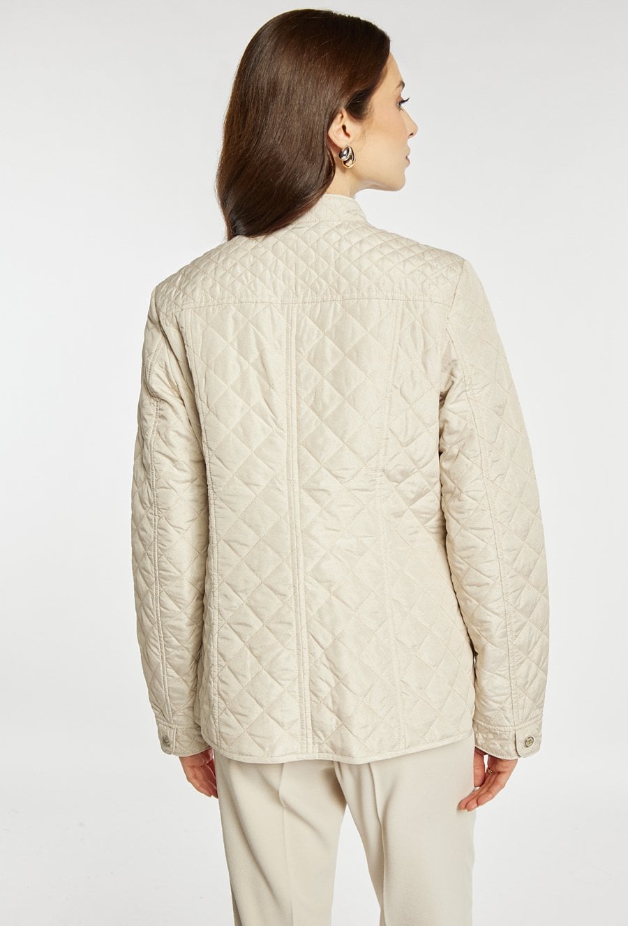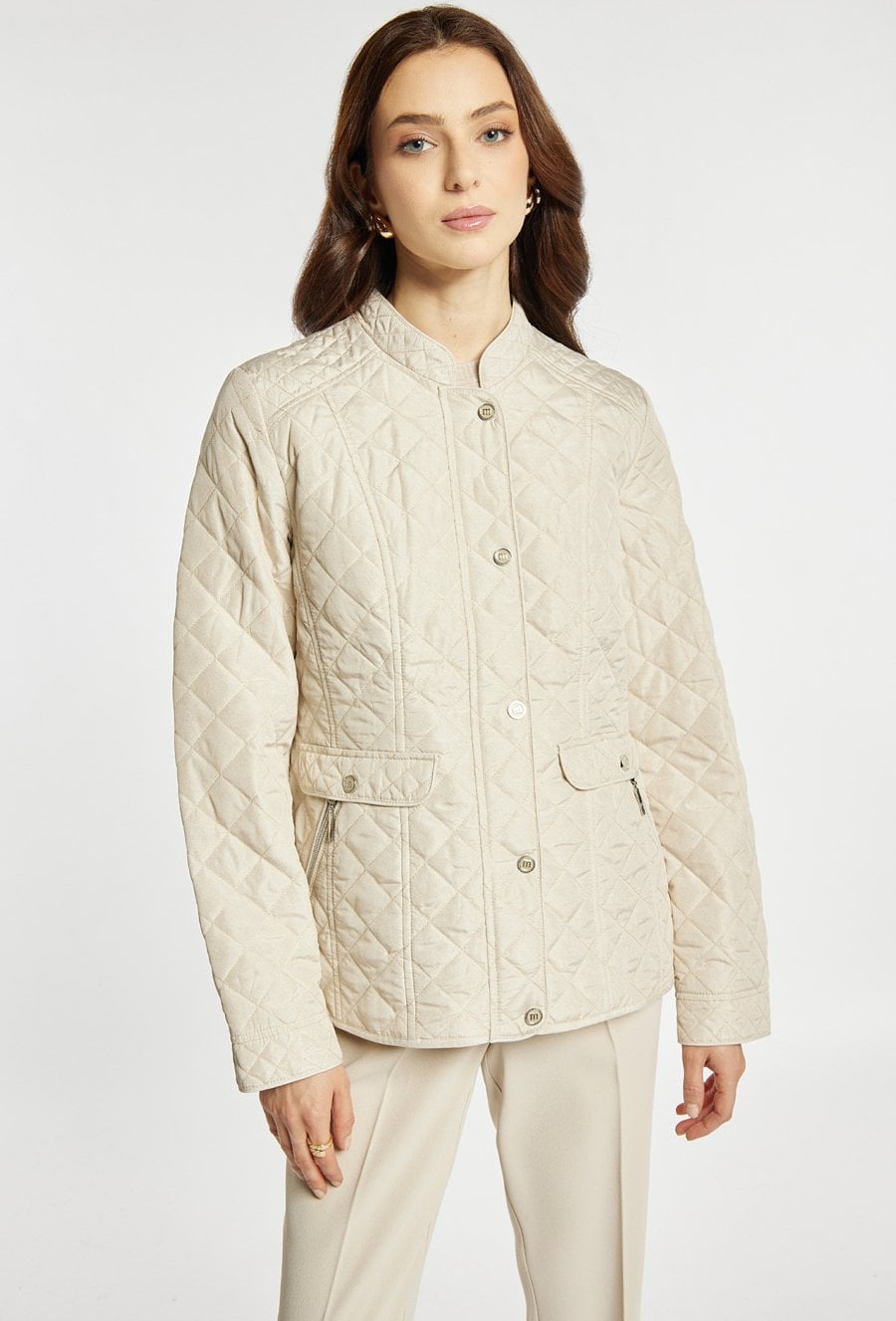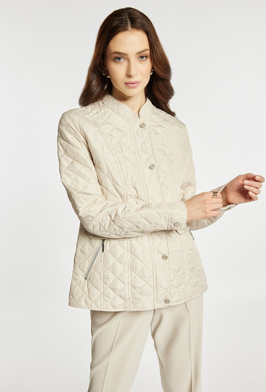Kurtka damska wykonana z lekkiego, pikowanego materiału, idealna na sezon przejściowy. Kurtka o klasycznym kroju z zapięciem na guziki i praktycznymi kieszeniami zapinanymi na zamek łączy funkcjonalność z eleganckim wyglądem. Stójka dodaje jej schludnego charakteru, a uniwersalny fason sprawdzi się w codziennych stylizacjach. Modelka na zdjęciu ma 177 cm wzrostu i prezentuje rozmiar 36.
