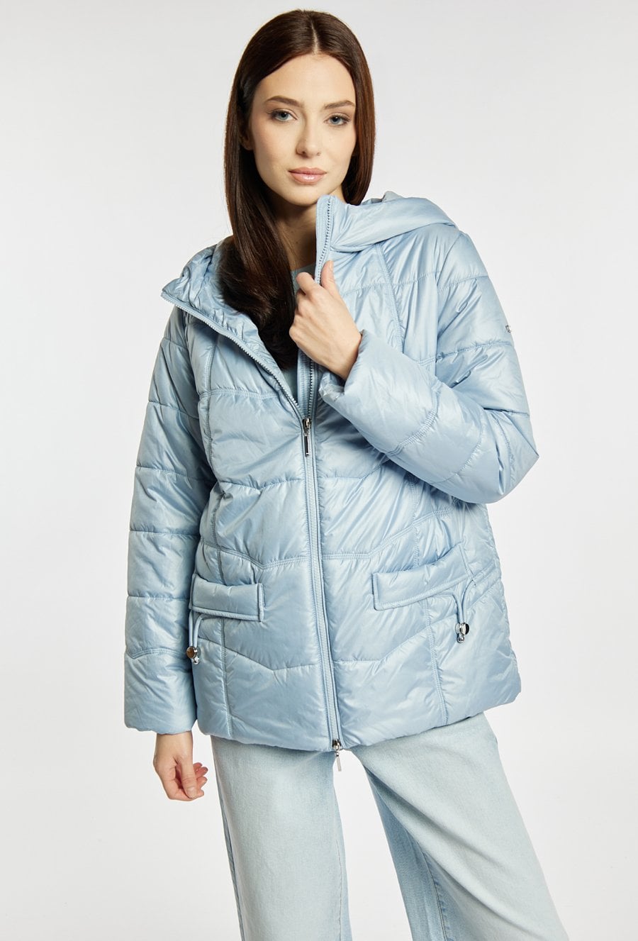 Pikowana kurtka o lekkiej, wygodnej konstrukcji – idealna na sezon przejściowy. Zapinana na dwukierunkowy suwak, z praktycznym kapturem i pojemnymi kieszeniami, sprawdza się na co dzień i dobrze chroni przed chłodem. Dzięki prostemu krojowi łatwo dopasować ją do wielu stylizacji, zarówno casualowych, jak i bardziej eleganckich. Modelka na zdjęciu ma 177 cm wzrostu i prezentuje rozmiar 36.