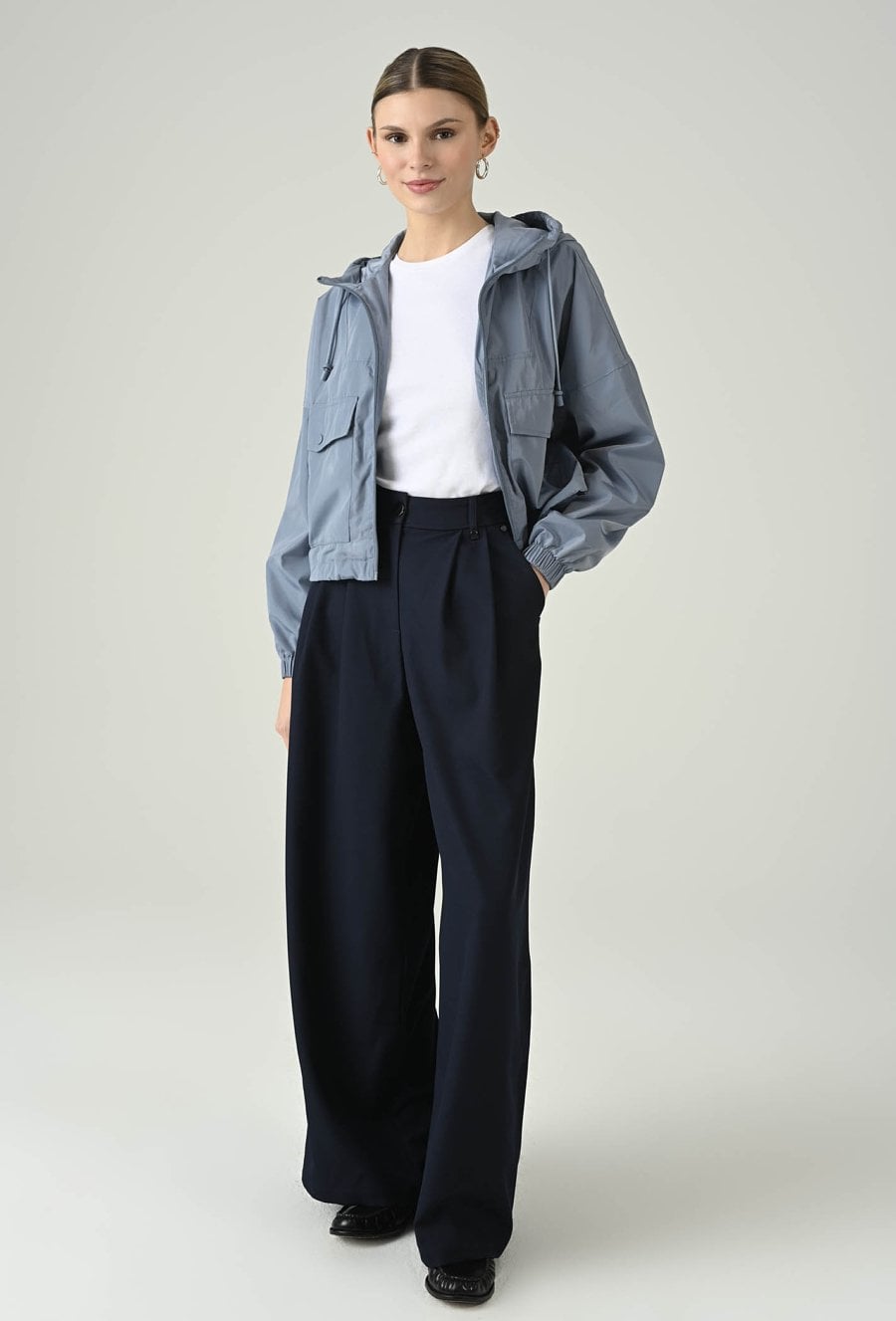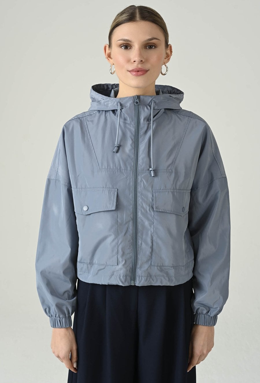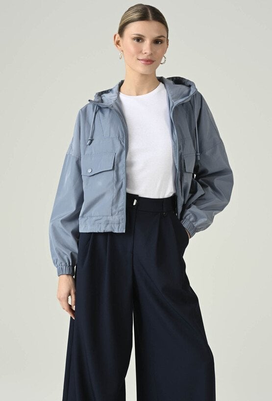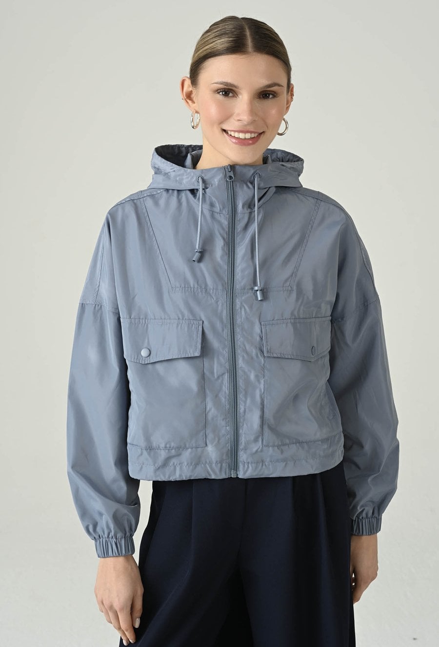 Praktyczna krótka kurtka na okres przejściowy, która łączy wygodę z funkcjonalnością. Wyposażona w kaptur, duże kieszenie i podszewkę, zapewnia komfort noszenia, a ściągacze na dole i przy kapturze chronią przed wiatrem. Wodoodporny materiał sprawia, że kurtka skutecznie chroni przed deszczem, czyniąc ją idealnym wyborem na zmienne, wiosenno-jesienne warunki pogodowe. Modelka na zdjęciu ma 177 cm wzrostu i prezentuje rozmiar 36.