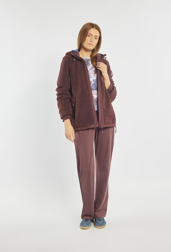 Kurtka z kolekcji Joy&Relax. Wykonana z miękkiego, przyjemnego w dotyku materiału typu „miś". Kurtka zapinana na zamek błyskawiczny, z praktycznym kapturem i funkcjonalnymi kieszeniami. Idealna do casualowych i sportowych zestawów, sprawdzi się zarówno w mieście, jak i na weekendowych spacerach. Modelka na zdjęciu m 177 cm wzrostu i prezentuje rozmiar 36.