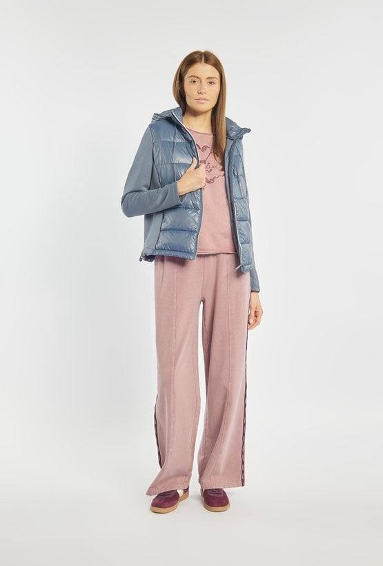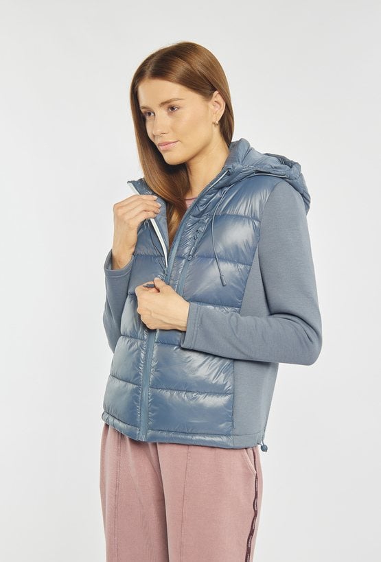 Pikowana kurtka z kolekcji Joy&Relax o sportowym charakterze. Model zapinany na suwak, z wygodnymi kieszeniami po bokach. Kurtka wyposażona w praktyczny, odpinany kaptur, który zwiększa jej funkcjonalność. Idealna propozycja do casualowych i sportowych stylizacji. Modelka na zdjęciu ma 177 cm wzrostu i prezentuje rozmiar S.