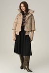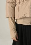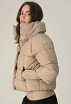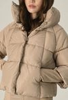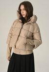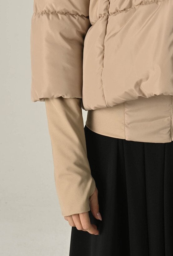 Beżowa pikowana kurtka z wysokim kołnierzem