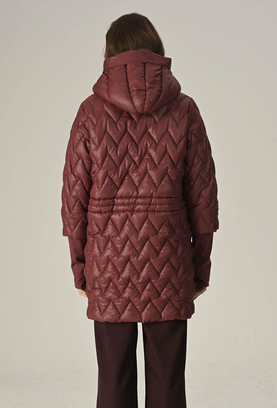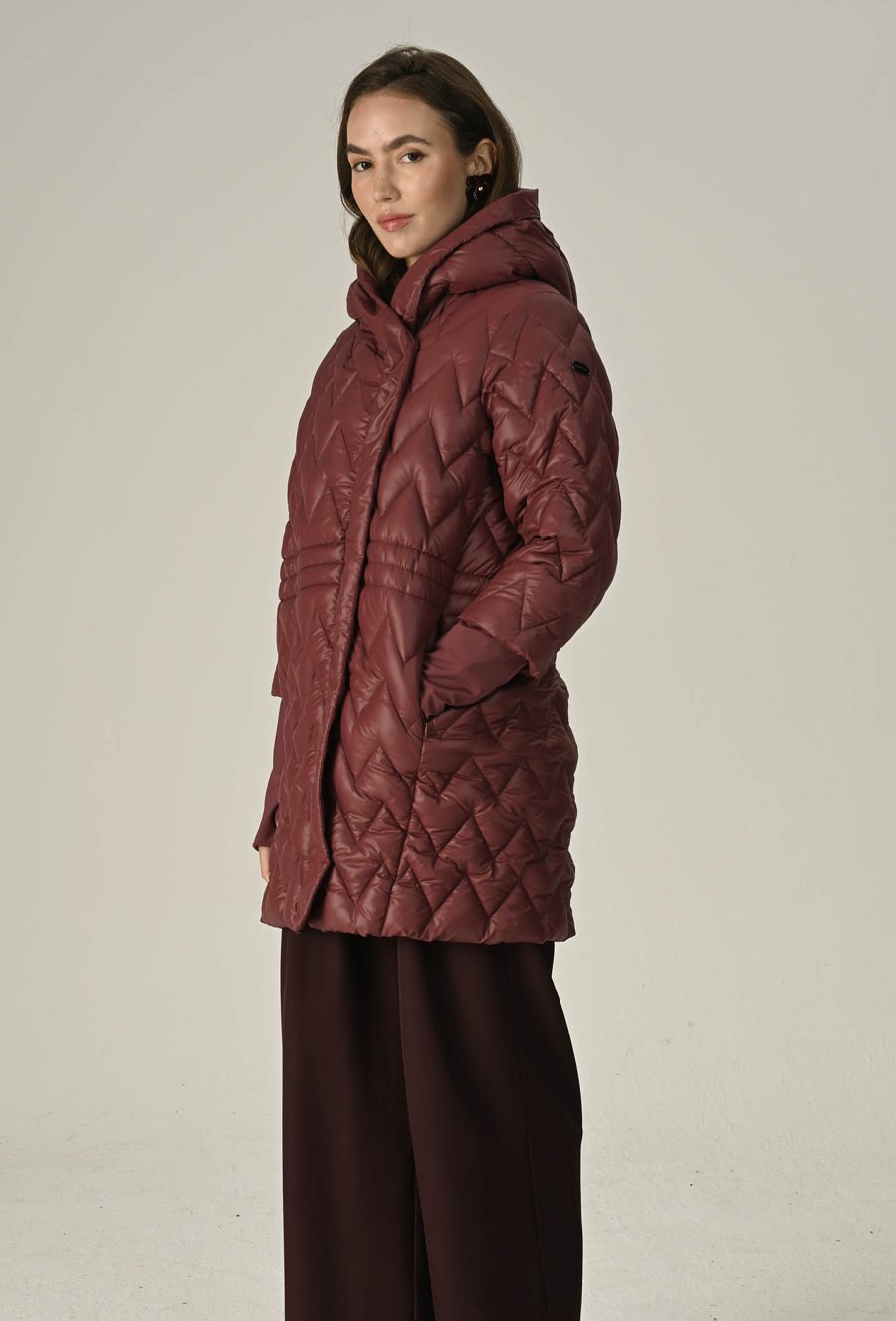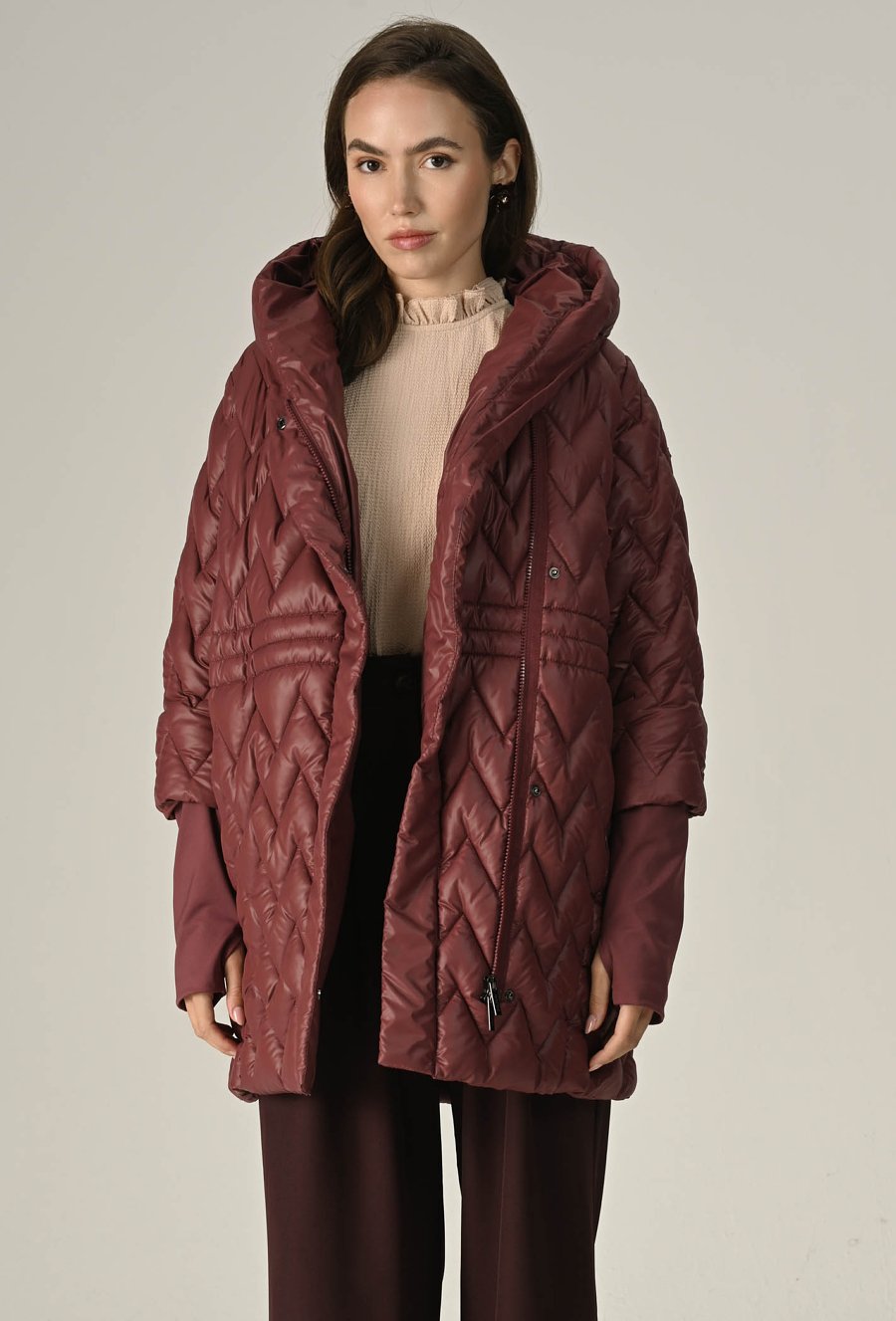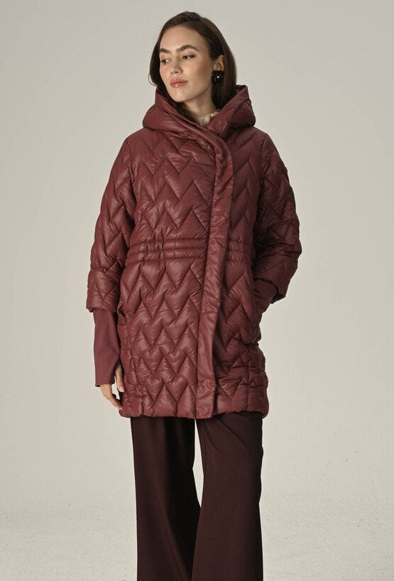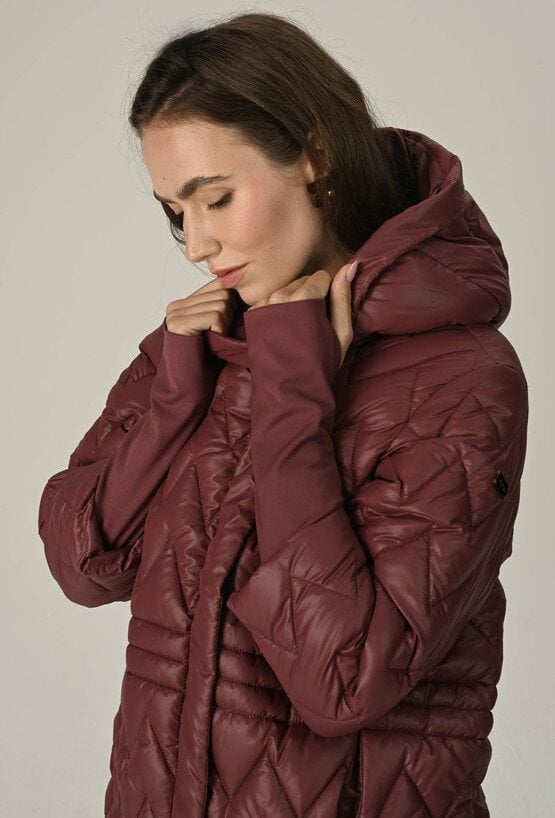 Dłuższa kurtka w beżowym kolorze to doskonała propozycja na jesienne i zimowe chłody. Ten model jest niezwykle wygodny, ciepły a do tego bardzo kobiecy. Kurka zapinana jest na zatrzaski. Ma duży kaptur, dwie boczne kieszenie. Materiał ma ukośne paski na przodzie i poziome z tyłu co dodaje jej charakteru. . Modelka na zdjęciu ma 174 cm wzrostu i prezentuje rozmiar 36.