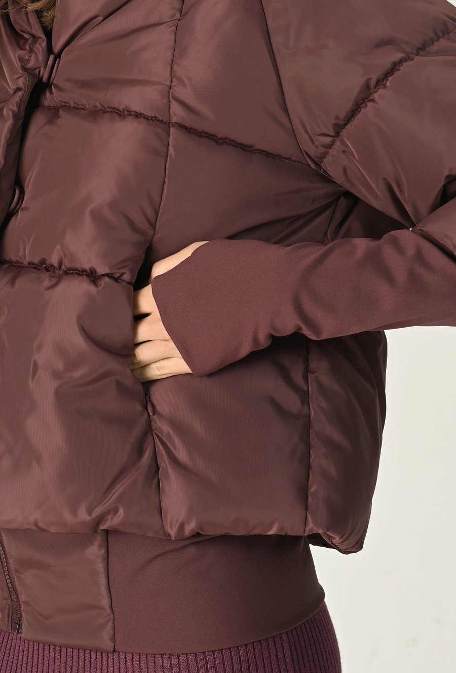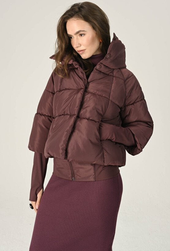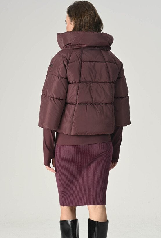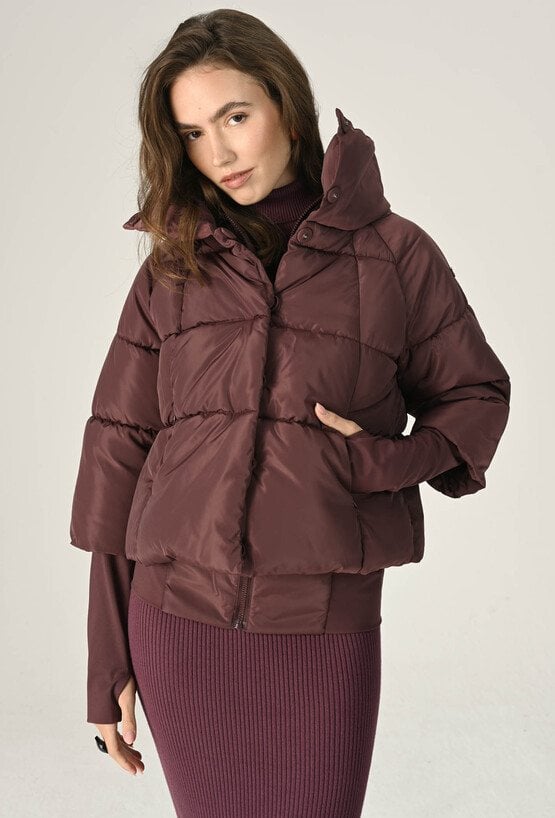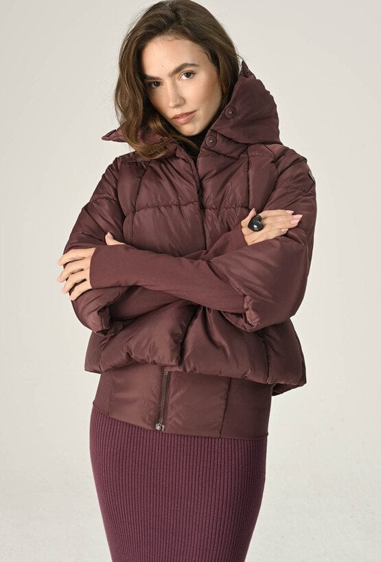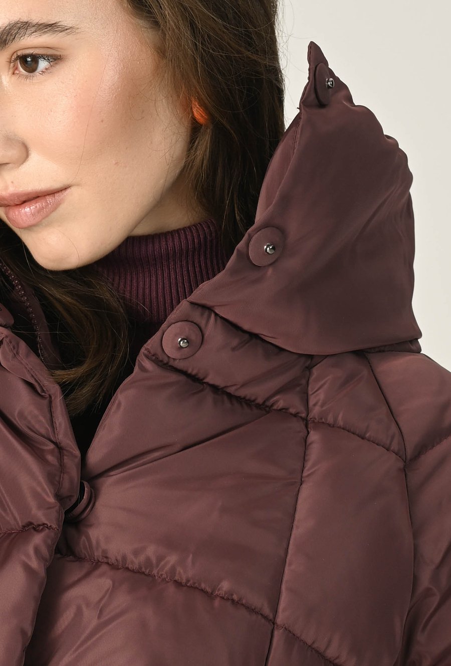 Bordowa pikowana kurtka z wysokim kołnierzem