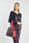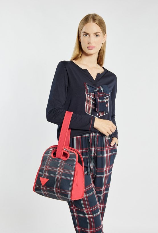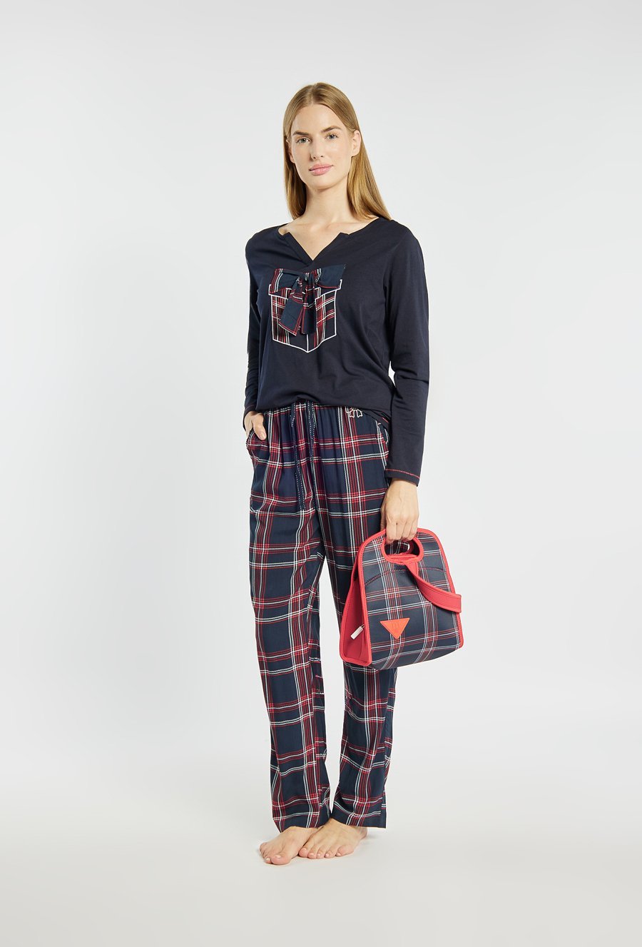 Kosmetyczka w modny, kraciasty wzór z kontrastującymi obszyciami, idealna do przechowywania drobiazgów w domu lub w podróży. Stylowa i funkcjonalna, doskonale komponuje się z piżamą w tym samym wzorze, tworząc spójny, świąteczny zestaw. Wymiary: 24 cm x 27 cm x 12 cm.