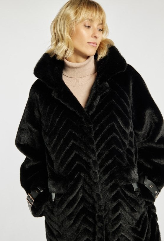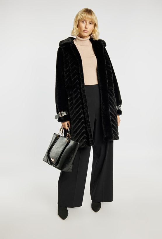 Płaszcz damski z imitacji skóry
