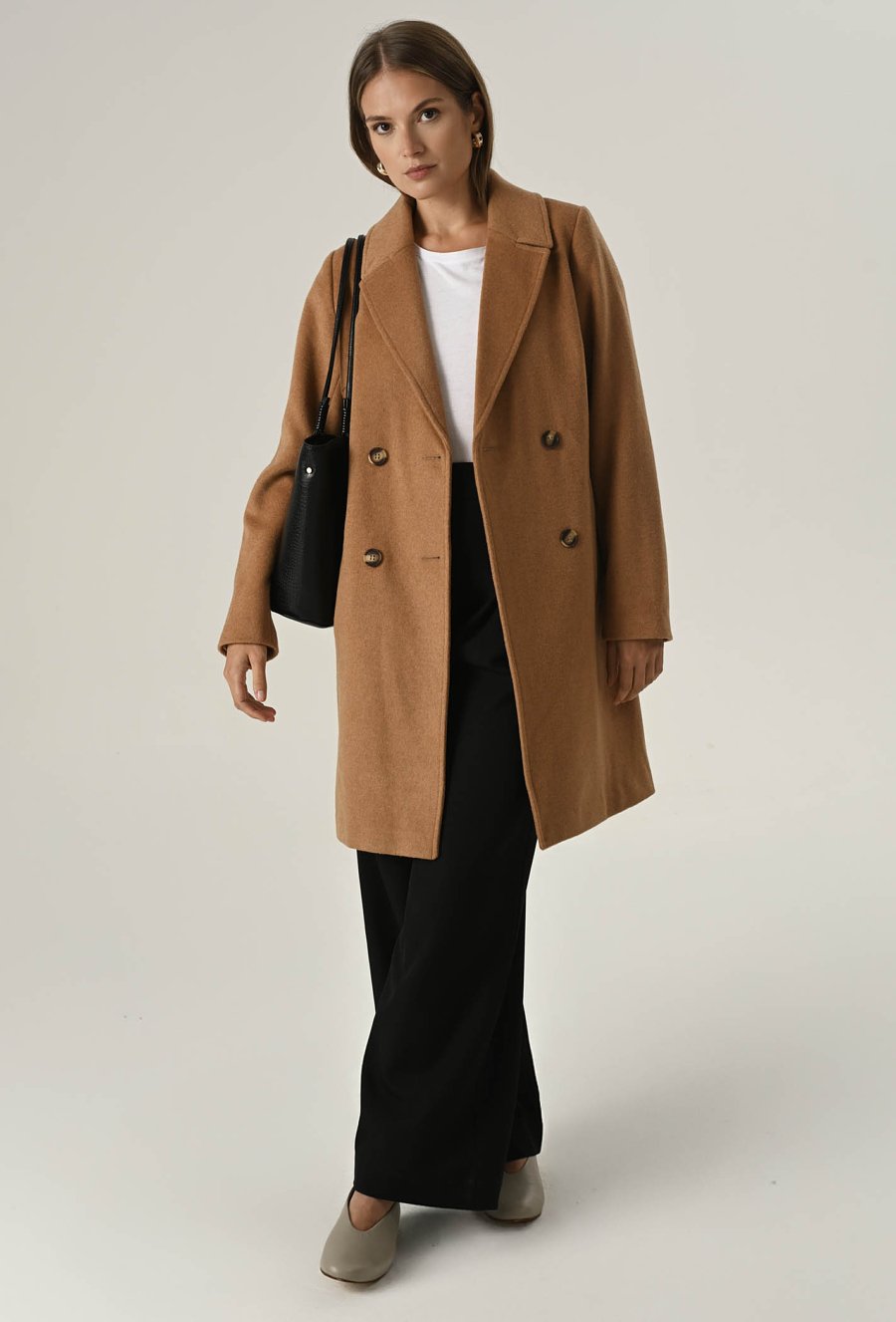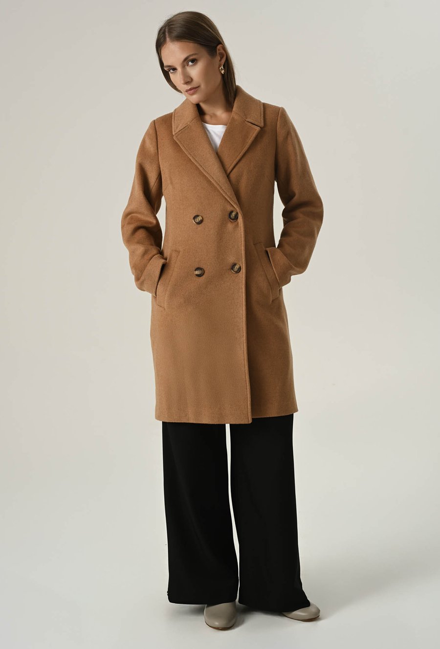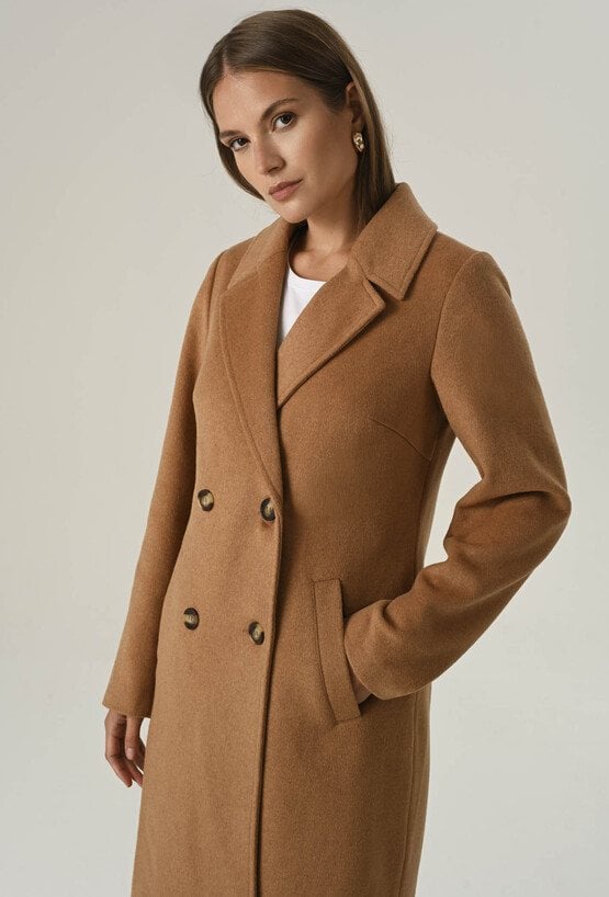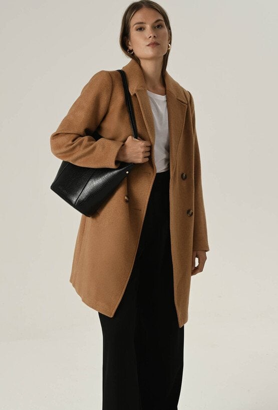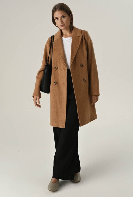Klasyczny camelowy płaszcz z wełną