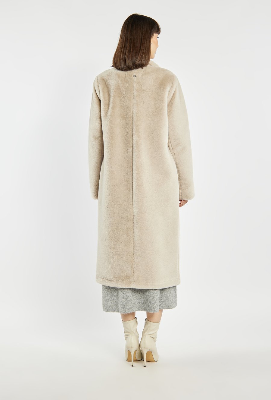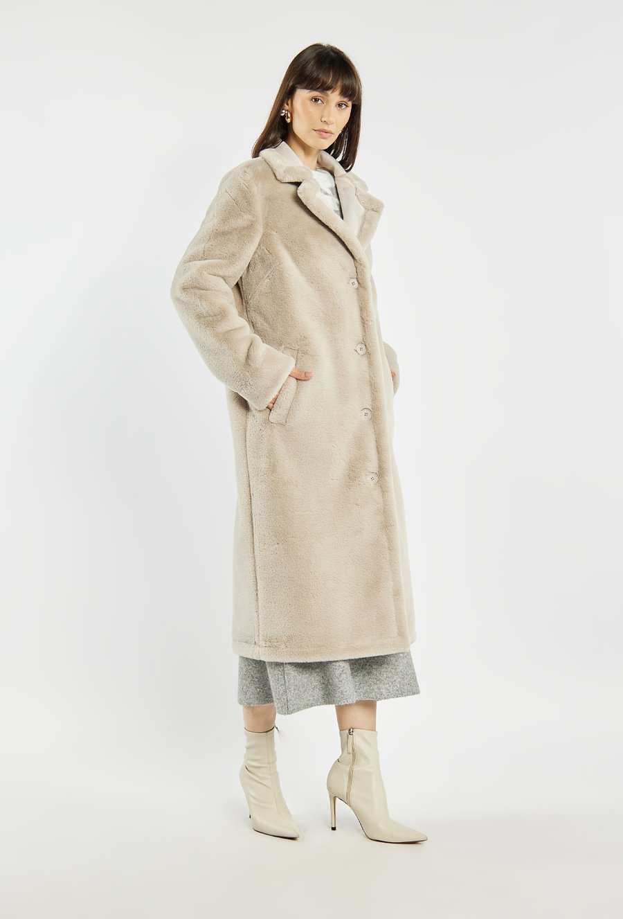 Płaszcz o klasycznym kroju, zapinany na guziki. Wyposażony w kołnierz z klapami i praktyczne kieszenie. Model prezentuje elegancki charakter, zapewniając jednocześnie ciepło i wygodę w chłodniejsze dni. Idealny do stylizacji zarówno codziennych, jak i bardziej formalnych. Modelka na zdjęciu ma 177 cm wzrostu i prezentuje rozmiar 36.