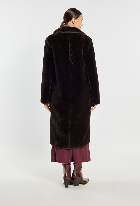 Płaszcz o klasycznym kroju, zapinany na guziki. Wyposażony w kołnierz z klapami i praktyczne kieszenie. Model prezentuje elegancki charakter, zapewniając jednocześnie ciepło i wygodę w chłodniejsze dni. Idealny do stylizacji zarówno codziennych, jak i bardziej formalnych. Modelka na zdjęciu ma 177 cm wzrostu i prezentuje rozmiar 36.