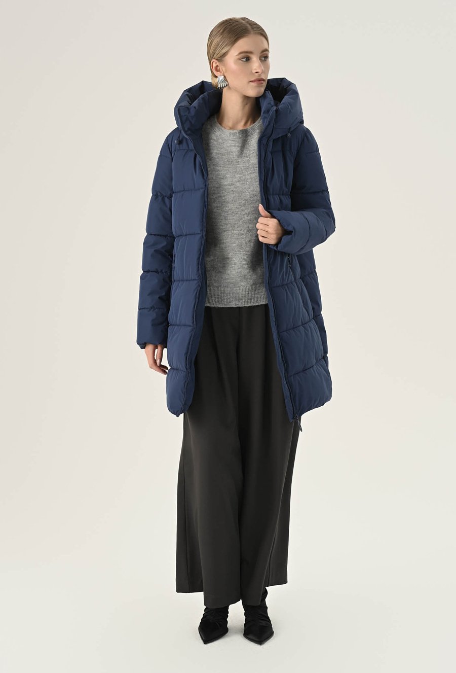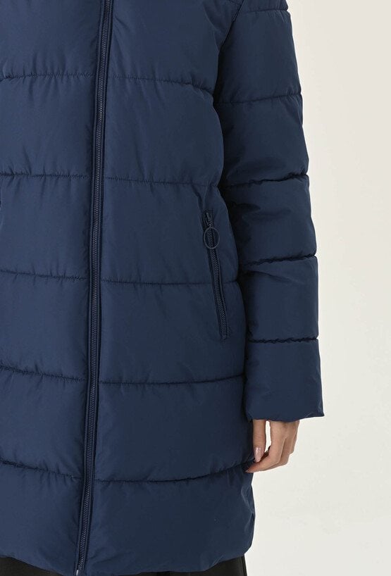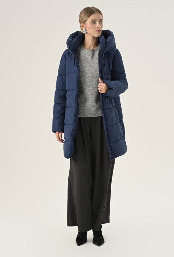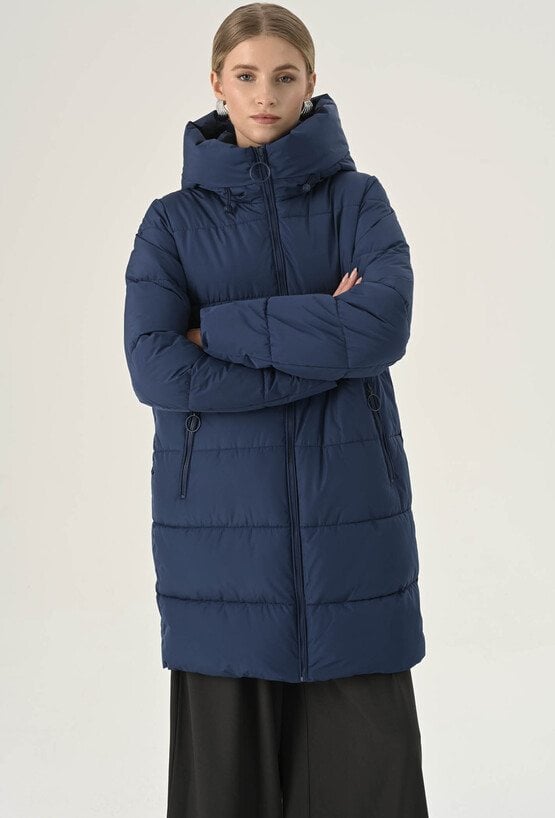 Czarna, ciepła kurtka o prostym kroju z kapturem, idealna na chłodne dni. Kurtka zapinana jest na zamek z ozdobnym kołem, co zapewnia wygodę i dodatkową ochronę przed chłodem. Posiada dwie praktyczne kieszenie, idealne na drobiazgi lub ogrzanie dłoni. To doskonały wybór dla kobiet ceniących połączenie funkcjonalności i elegancji — sprawdzi się zarówno w codziennych, jak i bardziej stylowych zestawach. Modelka na zdjęciu ma 177 cm wzrostu i prezentuje rozmiar 36/S.