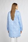 Lekki, pikowany płaszcz damski, doskonały na wiosenne dni. Model z długimi rękawami wykończonymi ozdobnym paskiem oraz praktycznymi kieszeniami. Całość zapinana na napy, co zapewnia wygodę. Modelka na zdjęciu ma 177 cm wzrostu i prezentuje rozmiar 36.