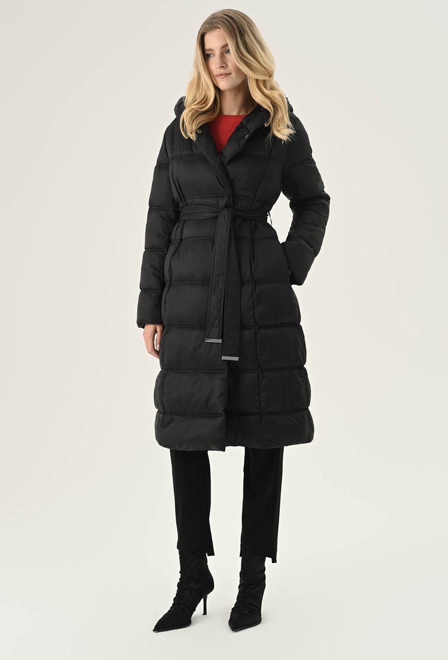 Ocieplana płaszcz wiązana w pasie