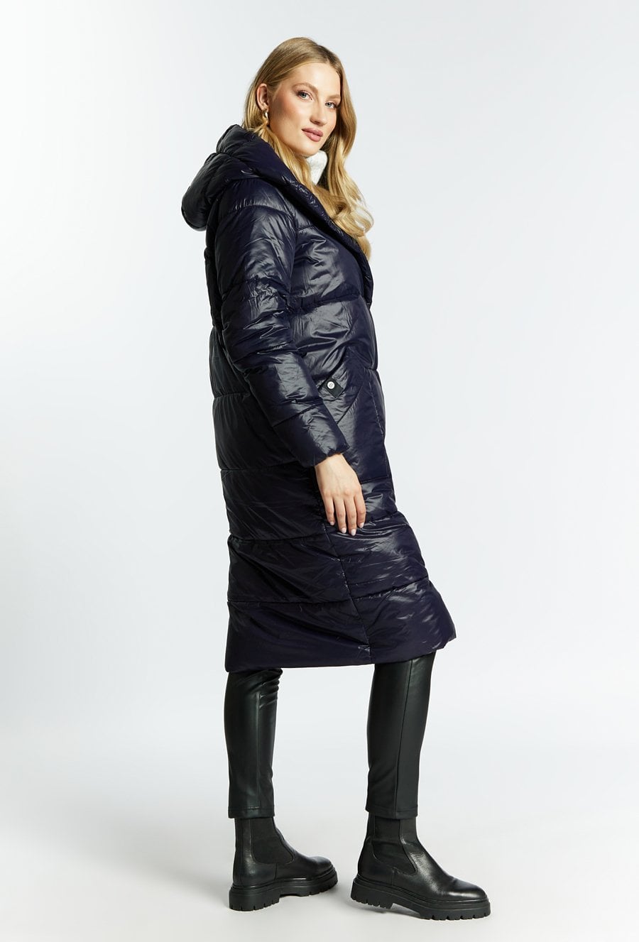 Długi, puchowy płaszcz
