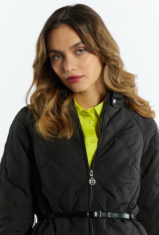 Pikowany płaszcz z tasiemką