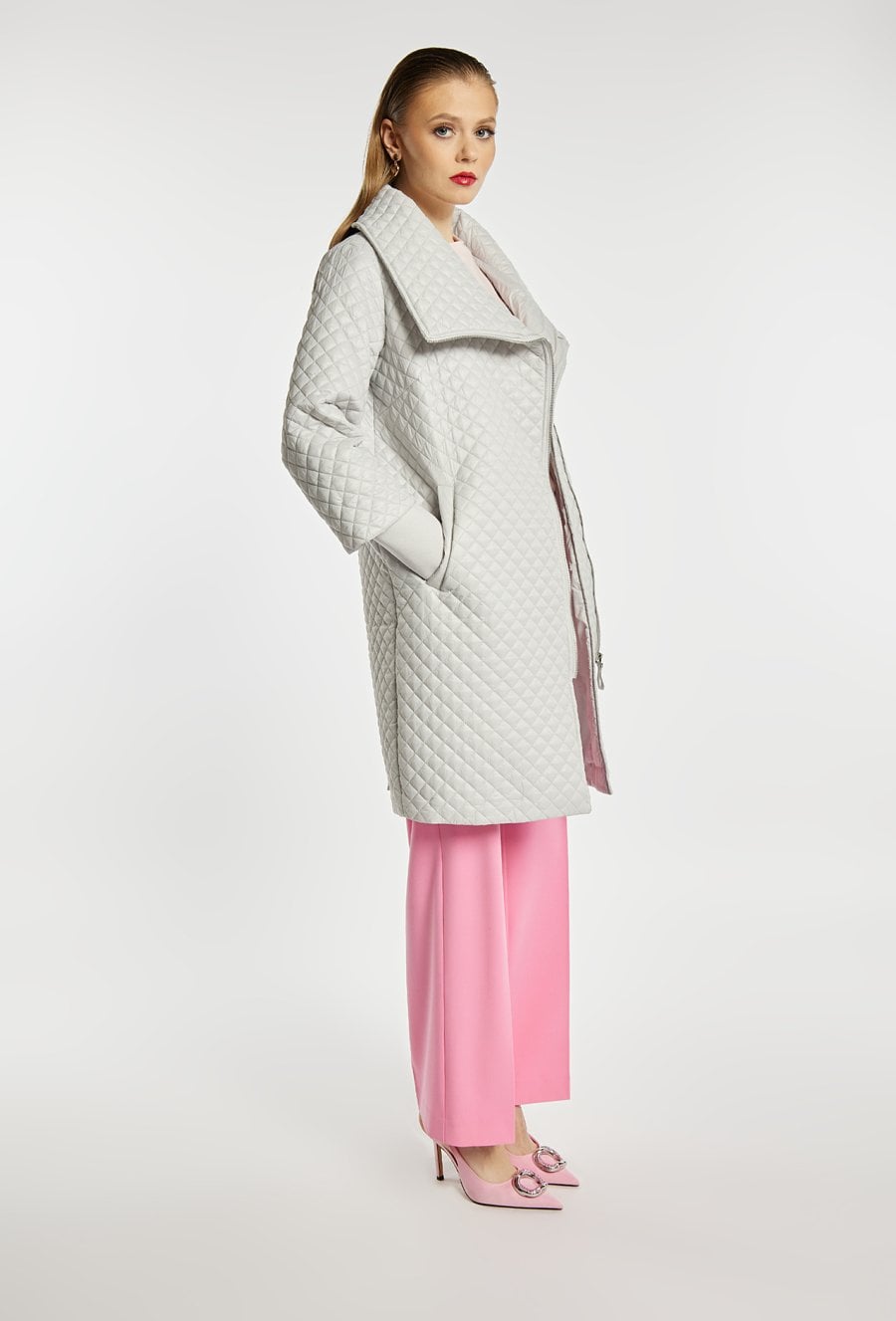 Pikowany płaszcz damski