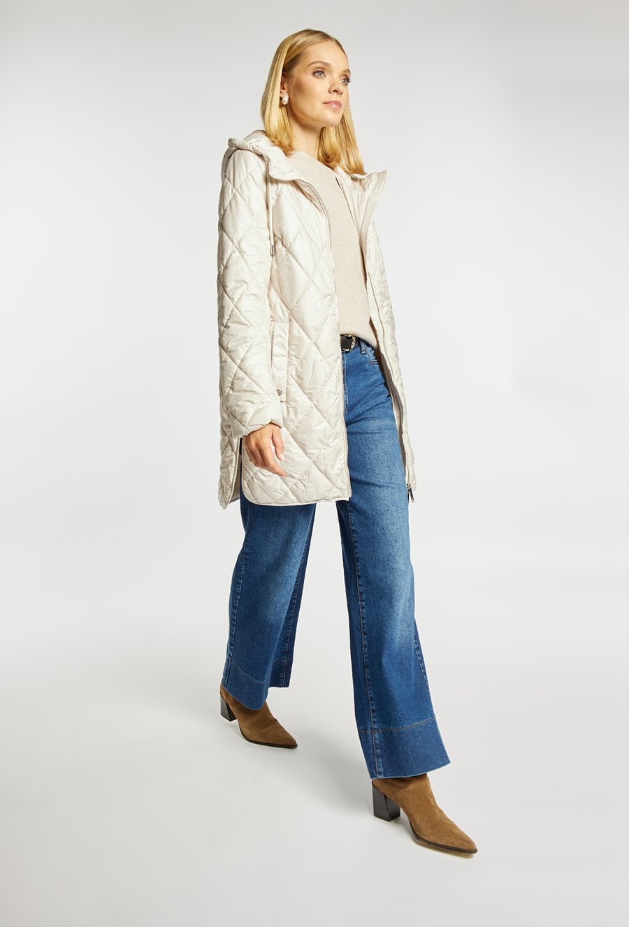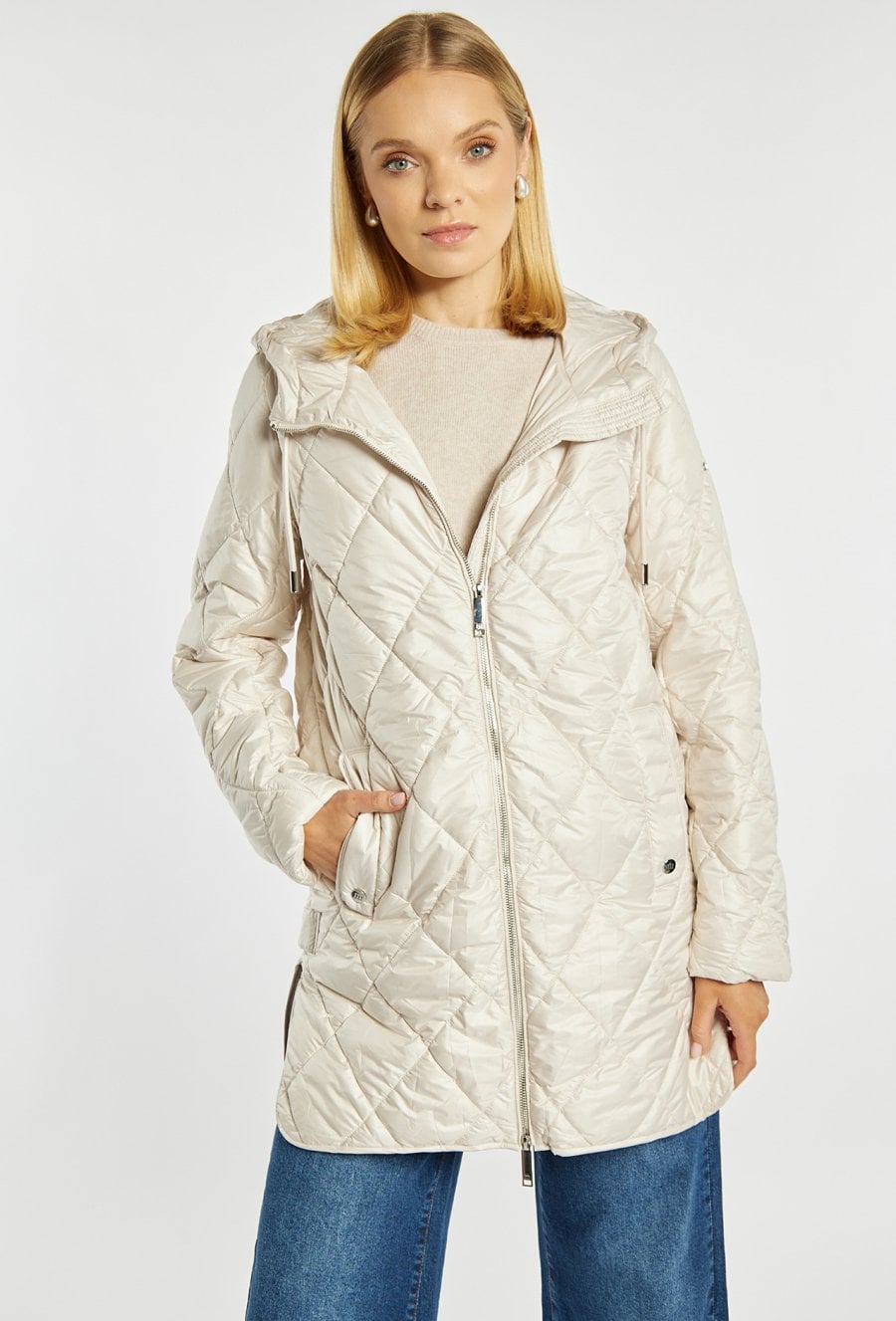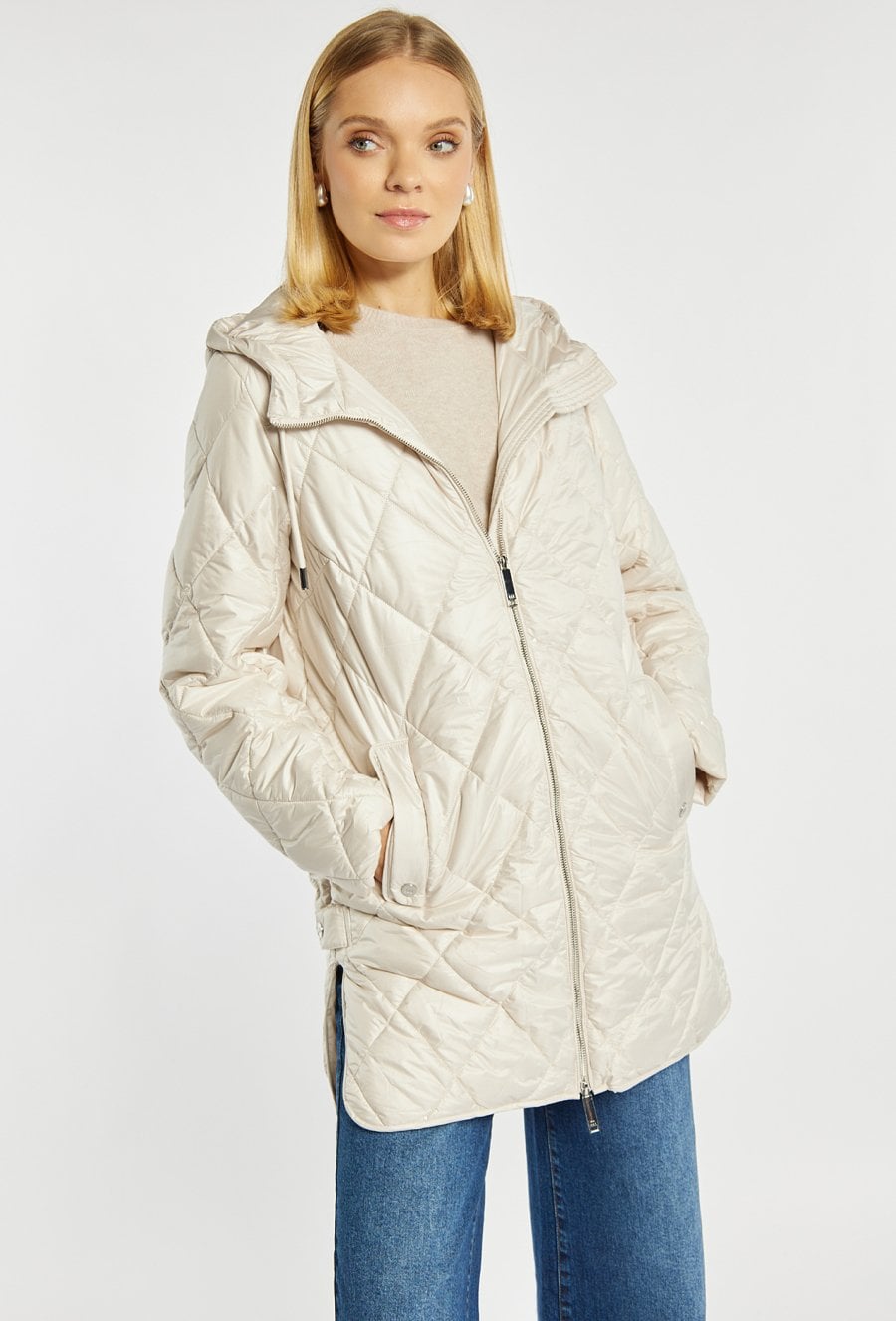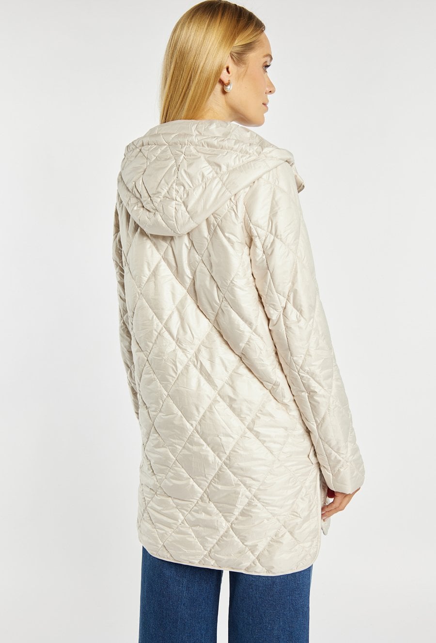 Pikowany płaszcz z kapturem